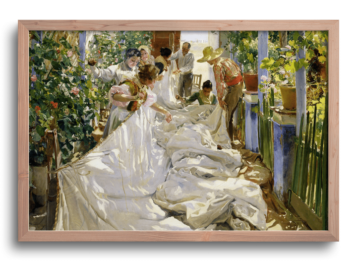 Cosiendo la vela (Cuadro con marco y vidrio)