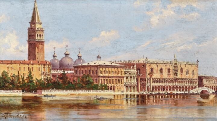 Vista de Venecia: el Palazzo Ducale, la Piazzetta San Marco y la basílica de Santa Maria della Salute desde la Riva degli Schiavoni