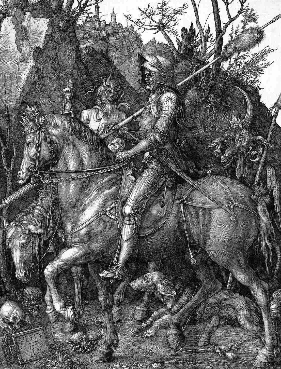 Alberto Durero (1471–1528) fue un artista alemán del Renacimiento cuya obra sentó las bases del arte germánico moderno. Nacido en Núremberg, fue un maestro del grabado, la pintura y la teoría artística. Su viaje a Italia a fines del siglo XV lo expuso al arte del Renacimiento italiano, lo que marcó profundamente su enfoque estético, combinando el detallismo nórdico con las proporciones y la perspectiva clásicas. Sus grabados en madera y cobre, como El caballero, la muerte y el diablo o Melancolía I, son considerados obras maestras por su complejidad simbólica y su virtuosismo técnico.