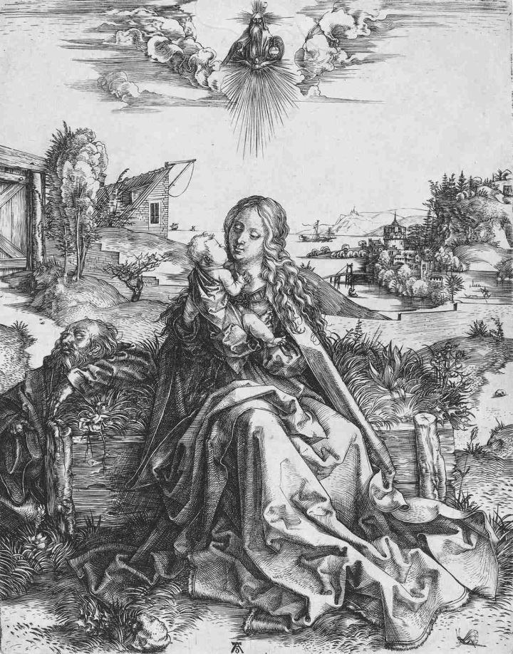 Alberto Durero (1471–1528) fue un artista alemán del Renacimiento cuya obra sentó las bases del arte germánico moderno. Nacido en Núremberg, fue un maestro del grabado, la pintura y la teoría artística. Su viaje a Italia a fines del siglo XV lo expuso al arte del Renacimiento italiano, lo que marcó profundamente su enfoque estético, combinando el detallismo nórdico con las proporciones y la perspectiva clásicas. Sus grabados en madera y cobre, como El caballero, la muerte y el diablo o Melancolía I, son considerados obras maestras por su complejidad simbólica y su virtuosismo técnico.