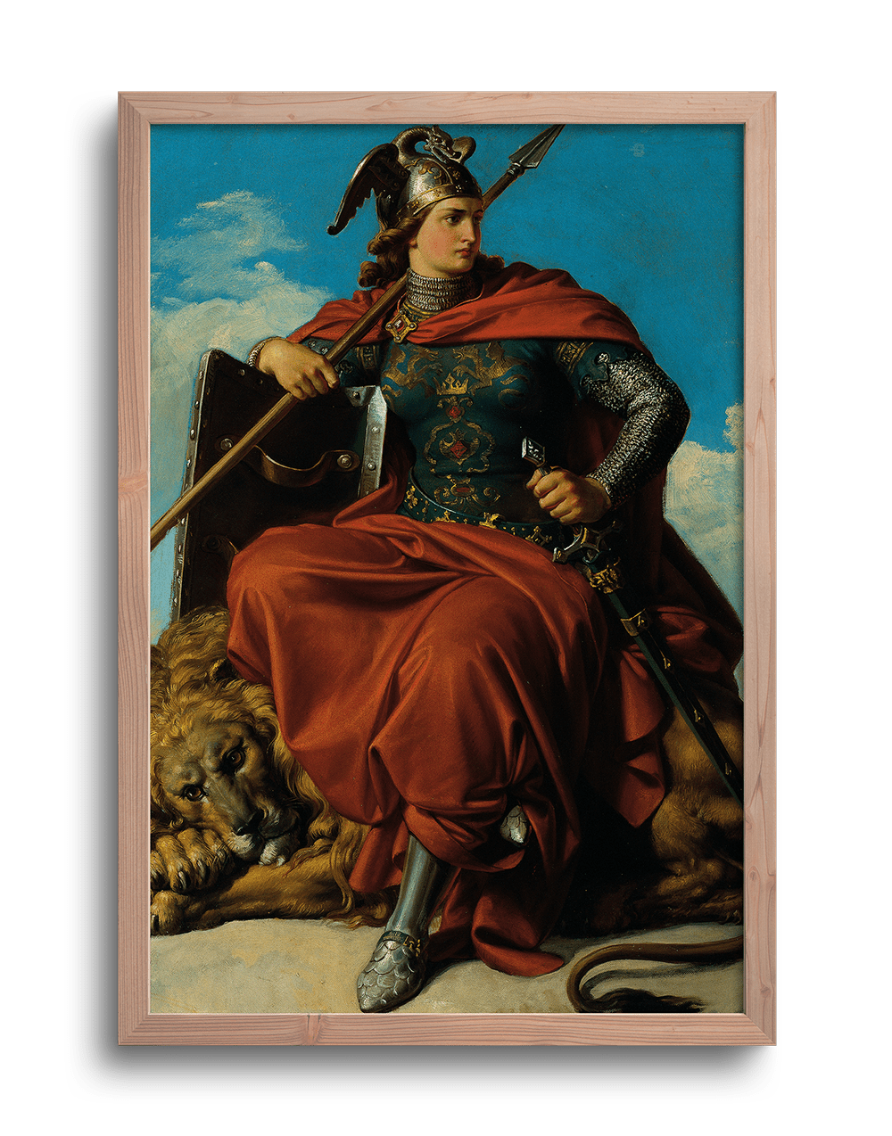 Von Blaas utiliza una paleta rica en tonos cálidos y contrastes dramáticos para evocar un dinamismo emocional que conecta con el espectador. Los detalles minuciosos, tanto en la expresión del personaje como en los objetos simbólicos, revelan una narrativa profunda que celebra el poder del coraje frente a la adversidad. La composición clásica y el equilibrio en los elementos visuales reflejan la formación académica del artista y su habilidad para transmitir tanto el dramatismo como la esperanza. Alegoría de la Valentía es un recordatorio visual de cómo el heroísmo trasciende las épocas, inspirando a generaciones a enfrentar sus propios desafíos con fortaleza y determinación.