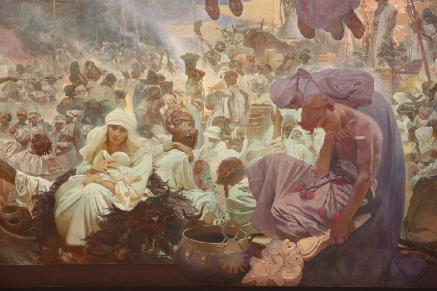 Sin embargo, Mucha nunca se consideró un simple decorador. Para él, el arte tenía una dimensión espiritual y social. Esta visión lo llevó, años más tarde, a dejar París y regresar a su tierra natal para emprender su obra más ambiciosa: La Epopeya Eslava, un ciclo de veinte lienzos monumentales dedicados a la historia y la identidad de los pueblos eslavos. Su legado es complejo: no solo fue un pionero del diseño moderno, sino también un artista profundamente comprometido con la idea de que el arte debía elevar, enseñar y conectar al ser humano con lo trascendente.