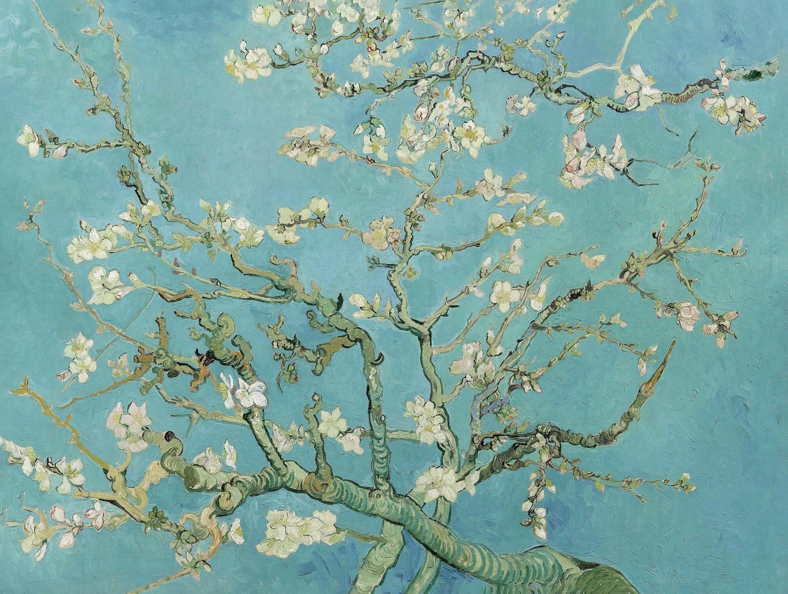 Pintada en Arlés durante uno de los periodos más inestables pero también más fértiles de la vida de Vincent van Gogh, Almendro en flor constituye una obra singular dentro de su producción. A diferencia del dramatismo cromático y gestual de sus paisajes o retratos más conocidos, aquí el artista opta por una composición luminosa, casi japonesa, que transmite calma y renacimiento. La pintura fue un regalo para su hermano Theo y su cuñada Jo con motivo del nacimiento de su sobrino, al que llamaron Vincent en su honor. La elección del almendro no fue casual: se trata de uno de los primeros árboles en florecer al finalizar el invierno, símbolo de esperanza, vida nueva y despertar. El propio Van Gogh lo describe como una imagen que debía representar la promesa de una vida que comienza. Su trazo, sin embargo, no es caligráfico ni suave: las pinceladas son densas, cortas, vivas, demostrando cómo incluso en la alegría, su pincel no deja de hablar desde la intensidad.