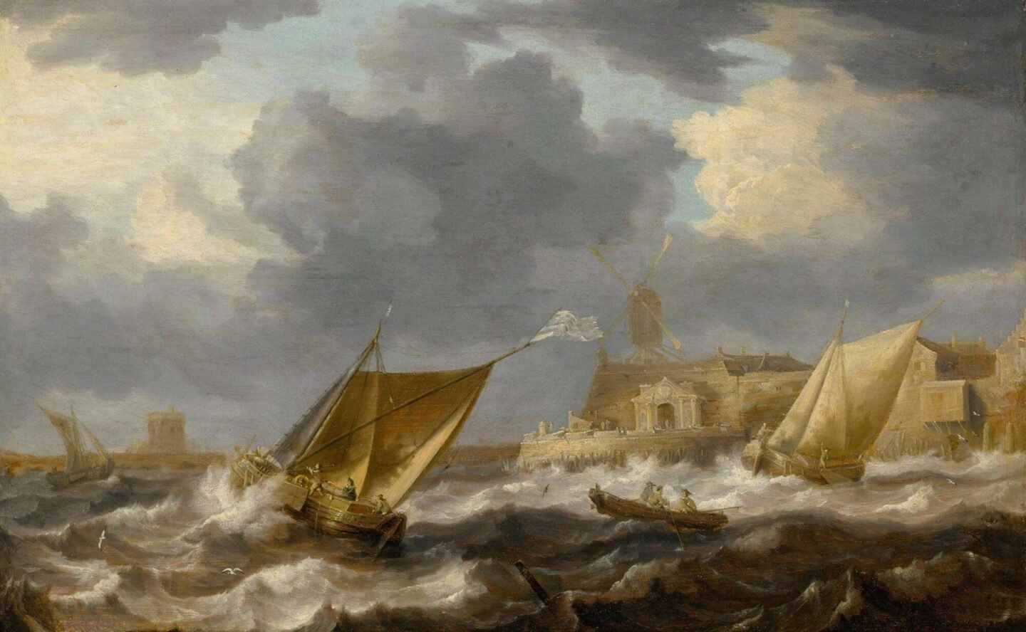 Bonaventura Peeters (1614–1652) fue un pintor flamenco especializado en marinas y paisajes costeros, reconocido por sus detalladas representaciones de escenas marítimas que capturan la interacción entre el hombre y el mar. Nacido en Amberes, Bélgica, el 23 de julio de 1614, Peeters provenía de una familia de artistas; sus hermanos Jan Peeters I, Gillis Peeters y Catharina Peeters también fueron pintores destacados. Se formó inicialmente con su padre, quien era maestro en la Guilda de San Lucas de Amberes desde 1607-1608. En 1634, Bonaventura se convirtió en miembro de esta misma guilda, consolidando su posición en el ámbito artístico de la época. Sus obras se caracterizan por un enfoque meticuloso en los detalles de las embarcaciones y las condiciones atmosféricas, mostrando una clara fascinación por la fuerza del mar y la vulnerabilidad humana frente a las fuerzas naturales.