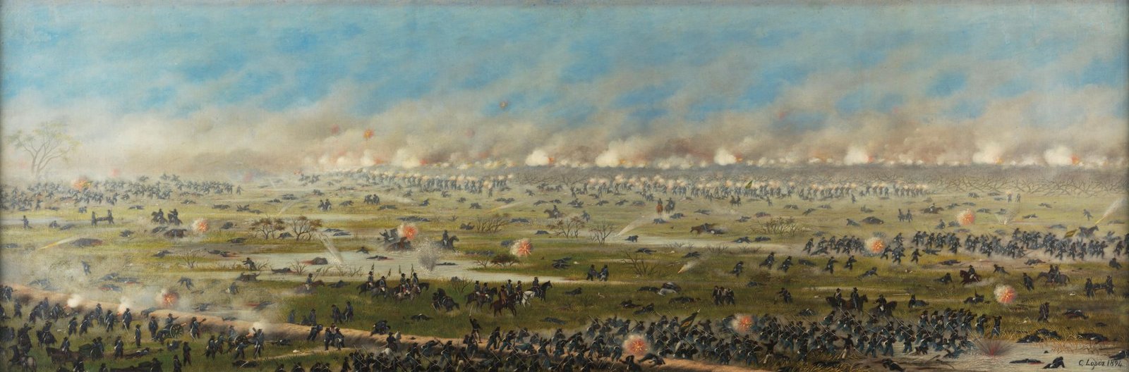 Cándido López (Buenos Aires, 29 de agosto de 1840 – Buenos Aires, 31 de diciembre de 1902)1 fue un pintor argentino que ha sido categorizado en el conjunto naïf, célebre por sus cuadros históricos sobre la guerra de la Triple Alianza. López inició su carrera artística daguerrotipista en 1858, siendo discípulo del retratista Carlos Descalzo. En un principio López se dedicó al retrato en su ciudad natal. Debido a que la daguerrotipia exigía una extremada composición y planeamiento previo de la imagen, fue en ese período que comenzó a iniciarse en el trabajo de esbozos que le llevarían gradualmente a dedicarse a la pintura. Fue así que los conocimientos de daguerrotipista le resultarían importantes para su posterior carrera como pintor: se hizo observador de encuadres, minucioso por la realidad, y se interesó por documentar lo que veía como momentáneo, para intentar «eternizarlo». Su primer trabajo al óleo, realizado en 1858, se tituló «El mendigo». Ese año pintó también su «autorretrato».1 Entre 1859 y 1863 recorrió las entonces pequeñas ciudades y poblaciones de la provincia de Buenos Aires y sur de la provincia de Santa Fe realizando gran cantidad de fotografías. En 1860 instaló su hogar en Mercedes, donde dos años más tarde retrató al recientemente asumido presidente Bartolomé Mitre. Poco tiempo después se instaló en San Nicolás de los Arroyos. En 1863 trabó amistad con el pintor muralista Ignacio Manzoni, quien promovió en él la idea de explorar los colores y las perspectivas. También recibió enseñanzas de Baldassare Verazzi, pintor italiano afincado en la Argentina. Estaba planeando un viaje de perfeccionamiento a Europa cuando estalló la Guerra del Paraguay. Se enroló como teniente en el batallón de Infantería de San Nicolás, a órdenes del coronel Juan Carlos Boerr,2 de la división del general Wenceslao Paunero. Participó en los combates de Paso de la Patria e Itapirú. Durante el tiempo libre entre combates – su regimiento no participó en operaciones ofensivas en ese período – pintó varios paisajes de campamentos militares. Los envió a Buenos Aires, donde fueron vendidos y se hicieron muy populares, ya que la población estaba interesada en cualquier cosa que la acercara a la situación en el frente de combate. Posteriormente participó en las batallas de Estero Bellaco, Yataytí Corá, Boquerón y Sauce. En la Batalla de Curupayty, en septiembre de 1866, una granada le cercena parte del brazo derecho, de modo que pasó a retiro como inválido de guerra. Meses más tarde, tras la convalecencia en Corrientes, regresó a San Nicolás. Al borde de la miseria, López comenzó a practicar pintura con su mano izquierda, aunque solamente consideró que estaba en condiciones de volver a dedicarse al arte hacia 1869. De modo que volvió a pintar, pero concentrándose en reflejar los campos de batalla y los campamentos de la Guerra del Paraguay. Más tarde vivió varios años en San Antonio de Areco y Merlo (Buenos Aires) No obstante, no logró prosperidad económica, de modo que en 1887 envió una misiva al expresidente Mitre, a quien le solicitó intercesión para obtener ayuda pública. Mitre en cuanto sujeto muy influyente se transformó en su comitente y le aportó un subsidio a cambio de una serie de cuadros que «documenten» la «Guerra del Paraguay». Es así que a partir de algunos de los esbozos realizados entre 1865-1870, López pintó sus principales cuadros entre 1888 y 1901. López intentó pintar unos cien cuadros, pudiendo concluir 52.3 Gran parte de estas obras aparecen con la firma Zepol, seudónimo que corresponde a la reversión de su apellido. Vivió en distintos puntos de la provincia, como Merlo y Baradero, encontrando un mecenas en la persona del doctor Norberto Quirno Costa, en cuya casa estuvo viviendo seis años en los que pudo dedicarse de lleno a la pintura de las batallas de sus recuerdos.45