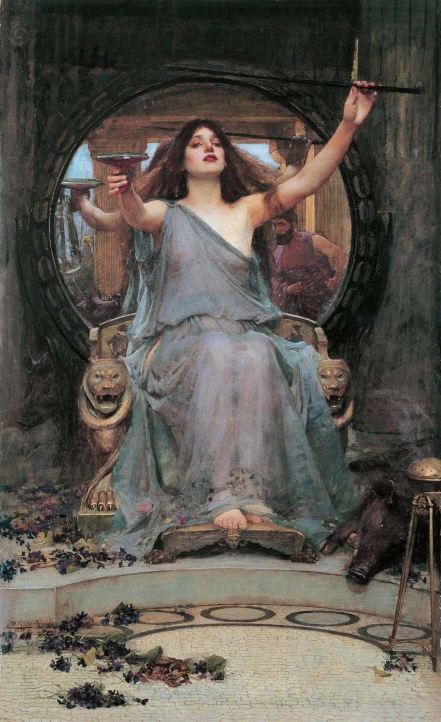Circe ofreciendo la copa a Ulises es una pintura de John William Waterhouse que muestra a la hechicera Circe entregando una copa a Ulises, capturando un momento de tensión y misterio. John William Waterhouse (1849-1917) fue un pintor inglés conocido por sus obras pre-rafaelitas y su habilidad para capturar la belleza y la melancolía.