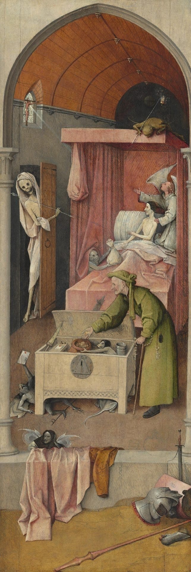 El Bosco (Jheronimus van Aken, ca. 1450–1516) fue un pintor nacido en ’s-Hertogenbosch, en el Ducado de Brabante (actual Países Bajos), proveniente de una familia de artistas con la que se formó en el taller familiar. Miembro de la Cofradía de Nuestra Señora, su vida está poco documentada y apenas se conoce a través de registros locales. Su estilo, inconfundible, se caracteriza por la invención de mundos fantásticos, criaturas híbridas y escenas alegóricas cargadas de simbolismo religioso y crítica social, lo que lo convirtió en un referente singular dentro del arte europeo tardomedieval y renacentista. Entre sus obras más reconocidas se cuentan El jardín de las delicias y La extracción de la piedra de la locura, conservadas en el Museo del Prado. Aunque se le atribuyen unas 25 a 30 pinturas, su influencia ha sido inmensa, llegando a ser considerado precursor de imaginarios modernos como el surrealismo, por la fuerza visionaria de sus imágenes y su lectura moral del mundo.