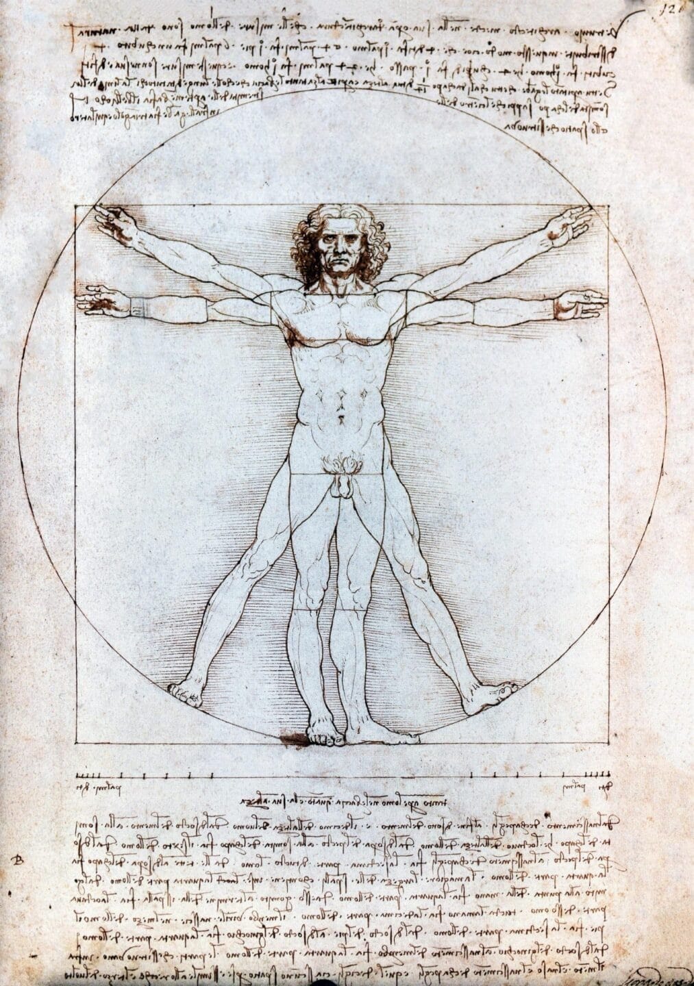 Leonardo da Vinci (1452–1519) fue el epítome del «hombre del Renacimiento»: pintor, escultor, arquitecto, ingeniero, anatomista y científico. Hijo ilegítimo de un notario y una campesina, Da Vinci mostró desde joven una habilidad excepcional para el arte y la observación de la naturaleza. Fue aprendiz en el taller de Andrea del Verrocchio en Florencia, donde adquirió una base sólida en pintura y escultura. Su fascinación por el cuerpo humano lo llevó a realizar estudios anatómicos detallados, diseccionando cadáveres en secreto para comprender mejor la estructura muscular y ósea. Esta obsesión con el detalle científico se refleja en El Hombre de Vitruvio, donde combinó arte y ciencia de manera magistral. La obra también encarna el pensamiento humanista renacentista, que situaba al ser humano como medida de todas las cosas. Da Vinci fue una figura enigmática y compleja, conocido por su carácter introspectivo y su tendencia a dejar proyectos inconclusos, lo que añade una dimensión de misterio a su legado. Su legado trasciende la pintura, ya que su pensamiento científico e inventivo influyó profundamente en disciplinas como la anatomía, la ingeniería y la mecánica.
