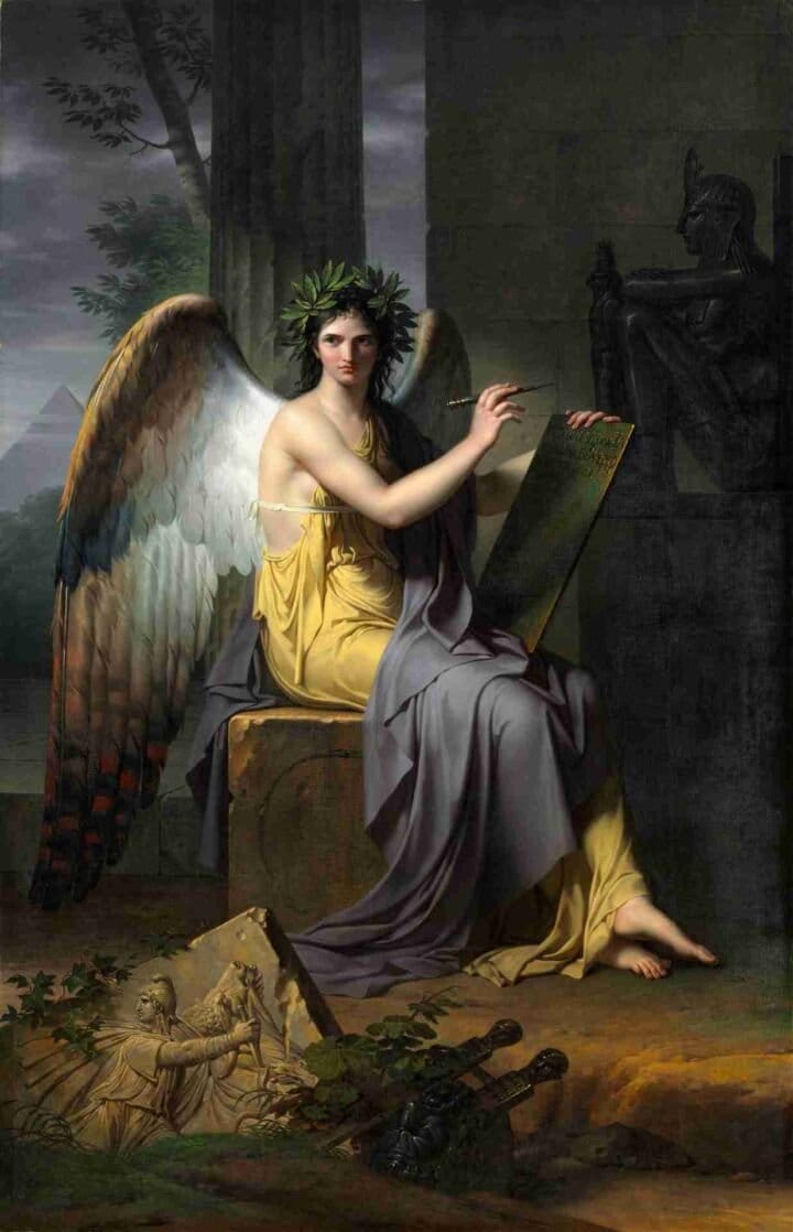 Esta pintura de Charles Meynier representa a Erato, la musa de la poesía lírica en la mitología griega. La obra es un ejemplo clásico del neoclasicismo, con su enfoque en la belleza idealizada y el detalle simbólico.