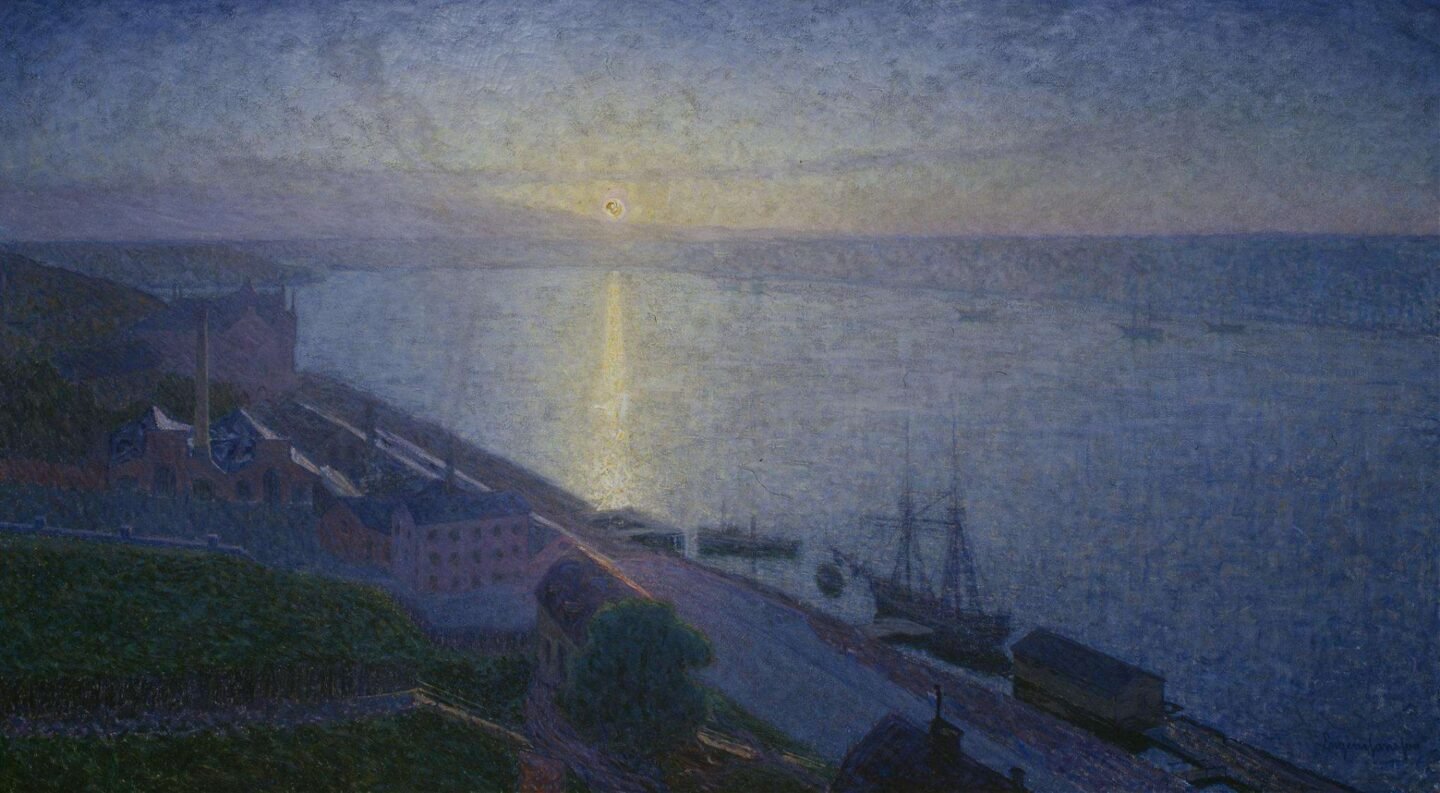 Eugène Jansson (1862-1915), pintor simbolista sueco conocido como «el pintor del azul», destacó por sus paisajes nocturnos iluminados y dominados por el color azul. Nació en Estocolmo en una familia aficionada al arte y la música. Contrajo escarlatina a los 14 años, dejándole secuelas de por vida, como problemas de visión y auditivos. Estudió en la Real Academia de Bellas Artes de Estocolmo y se formó en la escuela Tekniska. Aunque trabajó en retratos y bodegones, se inclinó hacia la pintura de paisajes, participando en exposiciones en 1885 y 1890.