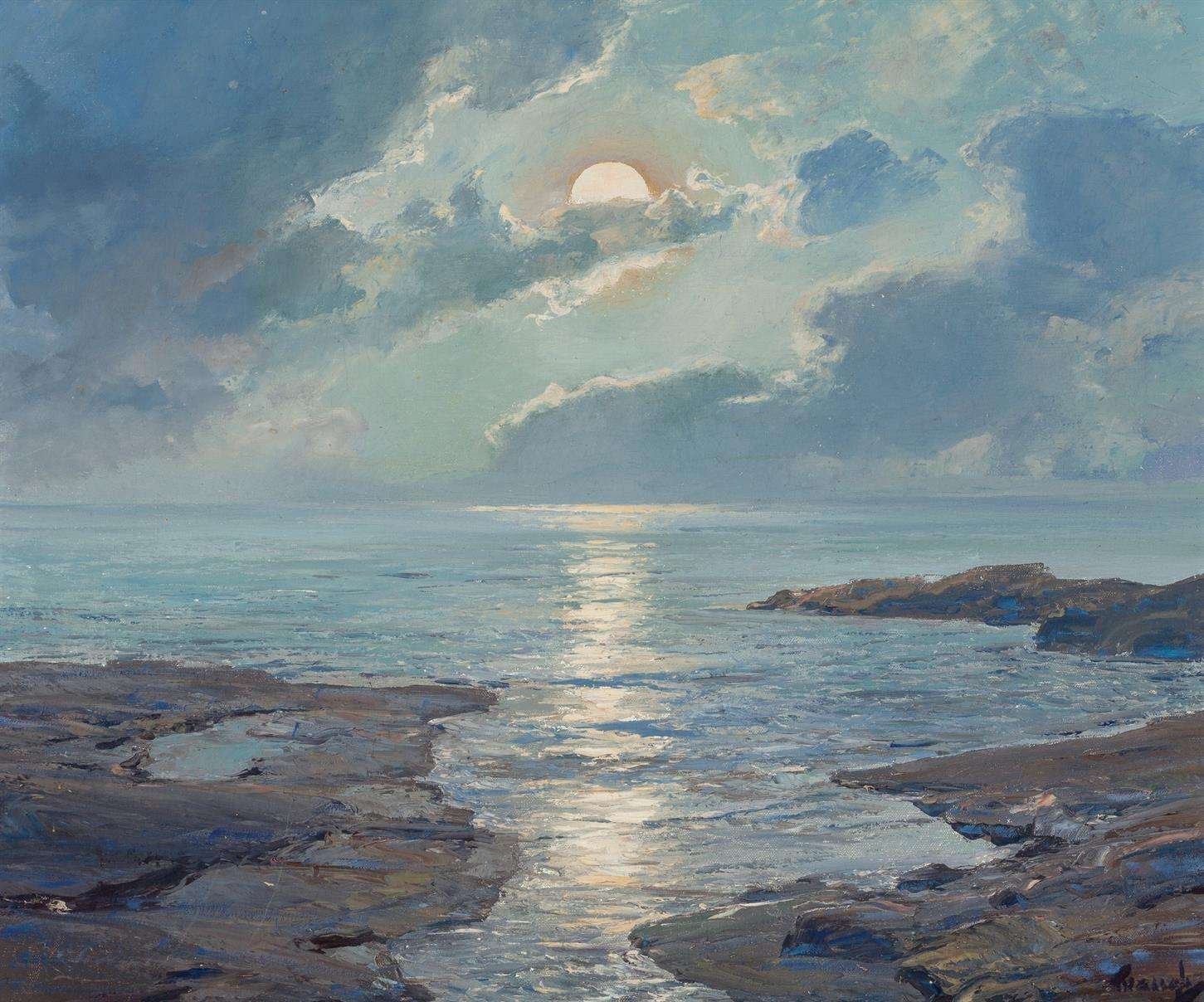 Frederick Judd Waugh (1861-1940) fue un pintor estadounidense reconocido por sus representaciones magistrales de paisajes marinos, capturando con intensidad la fuerza, la luz y el movimiento del océano. Formado en la Academia de Bellas Artes de Pensilvania y perfeccionando su estilo en Europa, Waugh se destacó como un maestro en el género del marino, transformando las olas y los cielos en composiciones poderosas y evocadoras. Obras como «El rugido del Atlántico» y «Mar tormentoso» son ejemplos de su capacidad para transmitir el dinamismo y la monumentalidad del mar en todas sus facetas.