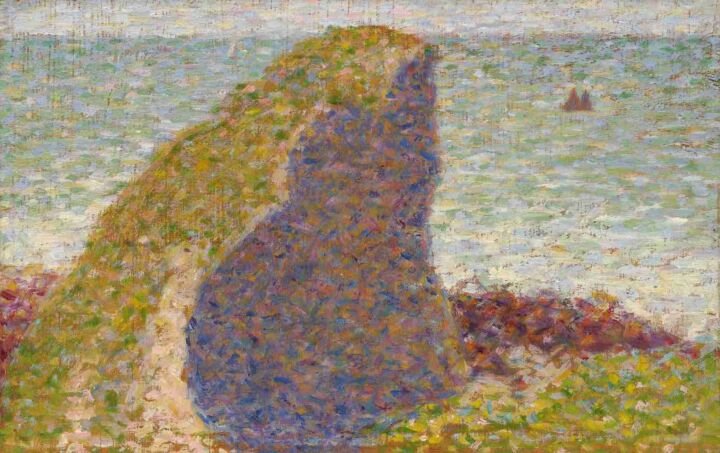 Después que su pintura fuera rechazada por el Salón de París, Seurat se negó a presentarla en establecimientos como el Salón, aliándose con los artistas independientes de París. En 1884 conoció y estableció una amistad con su compañero artista Paul Signac. Seurat compartió sus nuevas ideas acerca del puntillismo con Signac, quien posteriormente pintó con la misma técnica. En el verano de 1885 Seurat comenzó la creación de su obra maestra Tarde de domingo en la isla de la Grande Jatte, que le llevó dos años completar. Su cuadro se expone en 1886 en la octava y última exposición de los impresionistas. Con este cuadro nace el término puntillismo, o técnica de la mezcla óptica de los colores. El 26 de agosto del mismo año se inaugura la exposición de los independientes, en ella se exponen diez obras suyas.