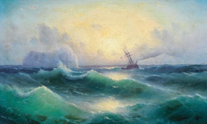 . Una curiosidad es que incursionó en la pintura invernal, técnica inusual en su repertorio marino, posiblemente como “firma” o pista del vínculo con su maestro Aivazovsky, bajo cuya supervisión firmaba obras —una práctica que ahora sirve para autenticar piezas suyas