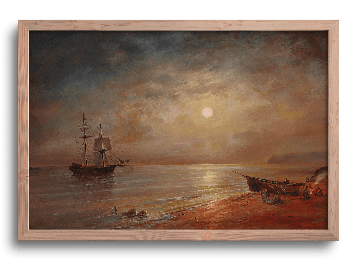 Pintor ucraniano profundamente vinculado al paisaje marino y forestal del sur de Ucrania y Crimea. Formado inicialmente en química, abrazó el arte tras estudiar en la Academia de San Petersburgo y, posteriormente, becado en la escuela del célebre Ivan Aivazovsky en Feodosia. En un periodo de intensos cambios —el fin del Imperio Ruso y las primeras convulsiones políticas— Kapustin se centró en una pintura delicada, serena y evocadora. Sus escenas nocturnas y amaneceres marinos no narran historias explícitas, pero sí capturan la intimidad del ánimo humano frente a la inmensidad natural, reflejando una época de transición: la explosión industrial y política contrasta con la quietud de sus mares iluminados por la luna o al amanecer.