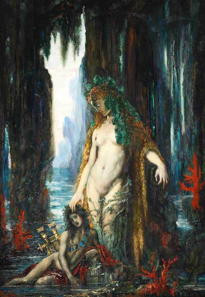 Gustave Moreau (París, 6 de abril de 1826-París, 18 de abril de 1898) fue un pintor francés, precursor del simbolismo, y célebre por su estética decadente. Se formó en el Romanticismo, y con un profundo conocimiento de los pintores italianos del Renacimiento, desarrolló un estilo personal con el que se anticipó al simbolismo francés a finales del siglo XIX.