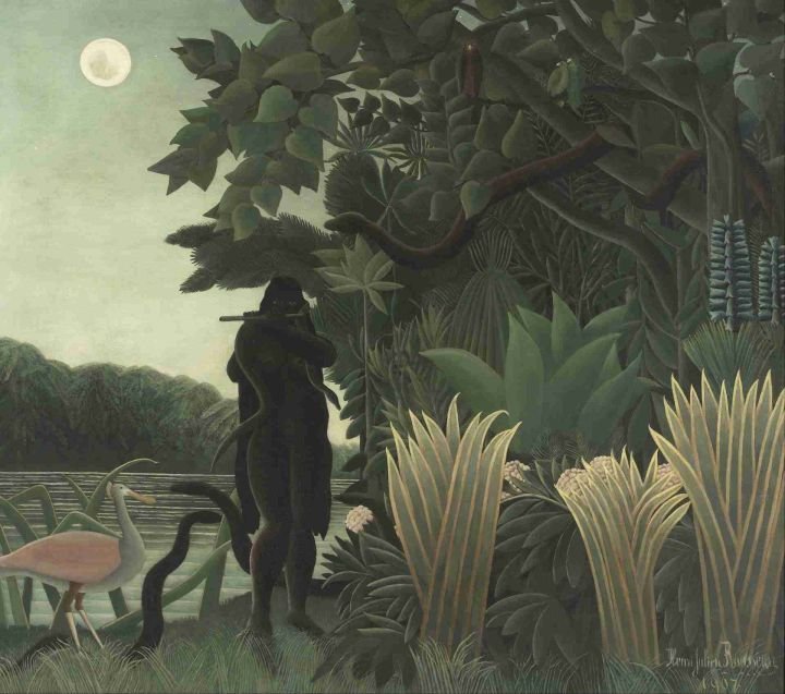 Henri Rousseau fue un pintor francés autodidacta, conocido por sus paisajes selváticos y su estilo naíf, que desafió las convenciones académicas y marcó un precedente en el arte moderno. Nació el 21 de mayo de 1844 en Laval, Francia, y comenzó a pintar relativamente tarde en su vida, mientras trabajaba como recaudador de impuestos en París, lo que le valió el apodo de «Le Douanier» (el aduanero). A pesar de no haber recibido formación formal en arte, Rousseau desarrolló un estilo distintivo caracterizado por líneas claras, colores saturados y una perspectiva plana que desafiaba las normas renacentistas. Sus selvas exuberantes, como «El sueño» (1910) y «La encantadora de serpientes» (1907), muestran una mezcla de realismo detallado en las plantas y los animales con una composición irreal y onírica. Rousseau nunca salió de Francia ni visitó una selva real; su inspiración provenía de visitas al Jardín de las Plantas en París y de relatos de viajeros y libros de exploración, lo que le permitía crear una visión idealizada y fantástica de la naturaleza.