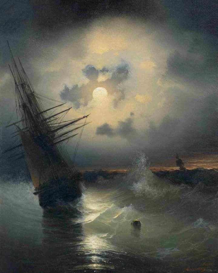 Ivan Aivazovsky (1817–1900) fue testigo privilegiado de ese siglo cambiante. Nacido en Crimea dentro del Imperio ruso, de familia armenia, creció en un territorio que también era frontera entre culturas y potencias. Pintor oficial de la Marina Rusa, viajó por Europa y el Mediterráneo, y conoció de primera mano los paisajes donde se libraban guerras, acuerdos diplomáticos o resistencias locales. Su obra no idealiza el mar: lo presenta como espacio de tránsito histórico, escenario de imperios que se cruzan, naufragan o colonizan. Atardecer sobre Isquia es menos una postal romántica y más un retrato de frontera: entre luz y sombra, entre reinos que caen y nuevas naciones que se forman. Aivazovsky, desde su paleta, supo hacer del mar una crónica pictórica del siglo XIX.