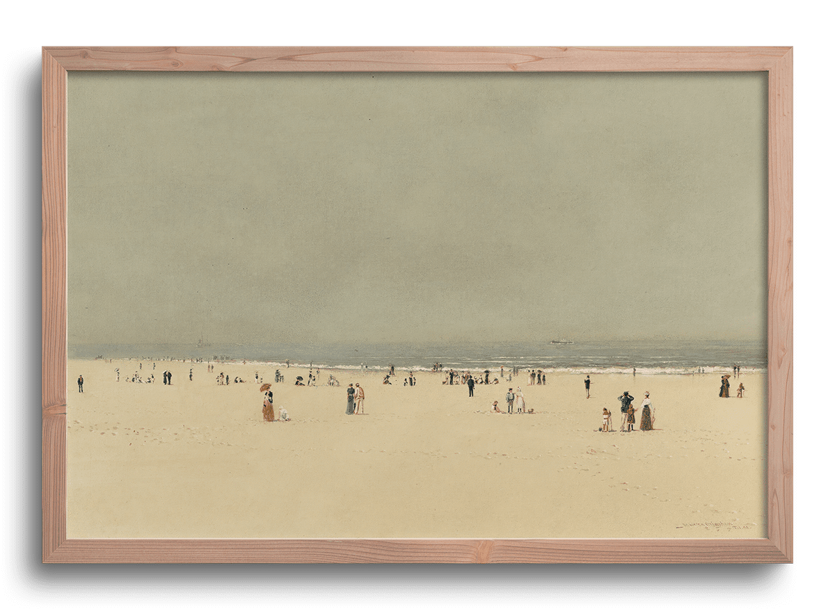 John Atkinson Grimshaw fue un pintor victoriano conocido por sus escenas urbanas nocturnas, pero también abordó paisajes costeros y atmósferas poéticas. En este caso, se aleja de la narrativa o el simbolismo moralizante propios del arte británico decimonónico y propone una pintura casi moderna en su abstracción. El vacío no es carencia sino posibilidad: lo que vemos es un estado mental, una fantasía estival sin historia, donde la mirada se pierde entre la arena, el mar y el cielo. Esta obra anticipa sensibilidades estéticas del siglo XX, como el minimalismo y la pintura atmosférica.