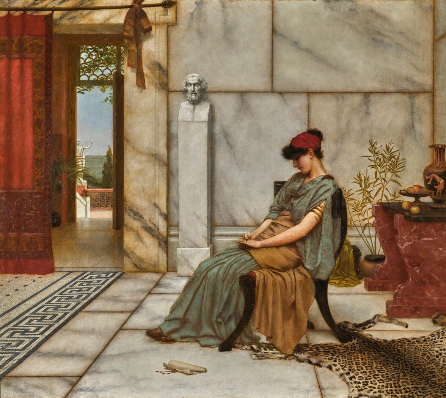 John William Godward (1861–1922) fue un pintor británico asociado al neoclasicismo tardío y al círculo estético influido por Lawrence Alma-Tadema. Su obra se centra casi exclusivamente en figuras femeninas idealizadas, ambientadas en escenarios de la Antigüedad grecorromana, con una atención obsesiva al mármol, los tejidos, la piel y la armonía cromática. Pintó escenas silenciosas, contenidas, sin conflicto narrativo, donde el cuerpo aparece como forma perfecta y atemporal, desligado de la historia y del drama. En un contexto artístico que avanzaba hacia la modernidad, Godward representó una persistencia consciente de un ideal clásico y decorativo, lo que lo volvió progresivamente marginal; su carrera quedó marcada por ese aislamiento estético, que culminó en un final trágico y solitario.