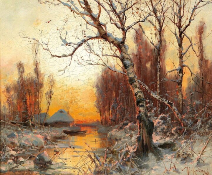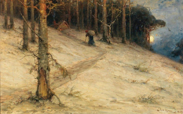 La obra de Klever se caracteriza por paisajes que capturan la atmósfera mística y sublime de los bosques rusos, a menudo representados al anochecer o en escenas invernales. Su estilo romántico, con un uso detallado y saturado del color, le valió el reconocimiento de la familia imperial y de coleccionistas como Pável Tretyakov. Sin embargo, en la década de 1890, se vio involucrado en un escándalo relacionado con el juego y el desfalco, lo que le llevó a una crisis nerviosa y a retirarse temporalmente de la pintura. En 1908, se trasladó a Alemania, donde residió hasta 1915, regresando luego a Rusia. Tras la Revolución, recibió apoyo de la Sociedad de Artistas Kuindzhi y continuó enseñando en la academia, contribuyendo significativamente a la formación de nuevos artistas hasta su fallecimiento en 1924.