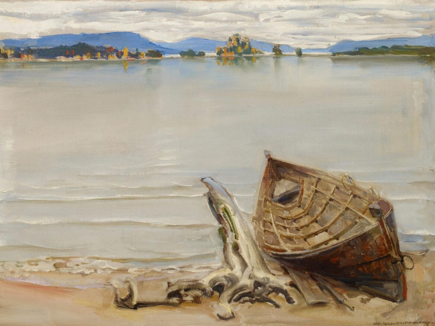 Akseli Gallen-Kallela (1865–1931) fue un pintor, ilustrador y diseñador finlandés, figura clave del arte nacionalista de Finlandia en tiempos de lucha por su autonomía frente al Imperio ruso. Su obra fusionó simbolismo, modernismo y tradición nórdica, y es especialmente conocida por sus representaciones del Kalevala, el poema épico finlandés. Estudió en París, pero construyó una estética propia que combinaba el lenguaje de las vanguardias europeas con motivos míticos, paisajes árticos y escenas populares finlandesas. Fue también arquitecto, diseñador de textiles y activista cultural, comprometido con el proyecto de una identidad nacional independiente. Su casa y taller, Kalela, se convirtió en centro de creación y símbolo del renacimiento cultural finlandés. A diferencia de muchos simbolistas, Gallen-Kallela no escapó del mundo, sino que lo usó como materia de construcción política y estética.