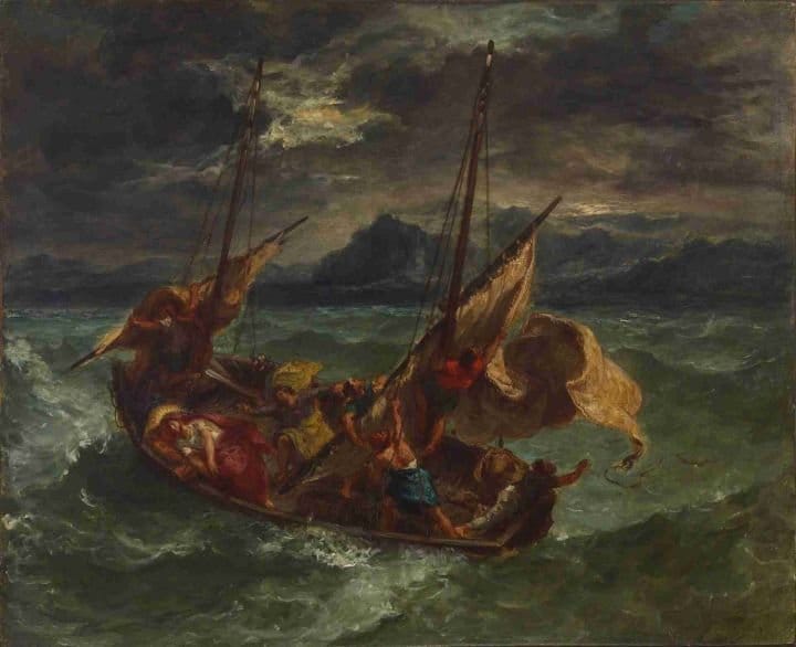 Eugène Delacroix (1798–1863), figura clave del Romanticismo francés, rompió con la rigidez del arte académico apostando por la expresión, el color y la emoción por encima de la forma clásica. Cuando presentó esta obra en el Salón de París, tenía apenas 24 años. Fue lector apasionado, viajero incansable y artista comprometido con lo simbólico y lo humano. Su trazo suelto y vibrante influyó en generaciones posteriores, desde los impresionistas hasta los expresionistas. Delacroix pintó como quien abre una puerta hacia lo más profundo del alma, explorando temas donde la belleza convive con la oscuridad y la fuerza del arte se vuelve revelación.