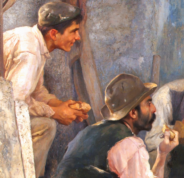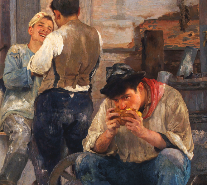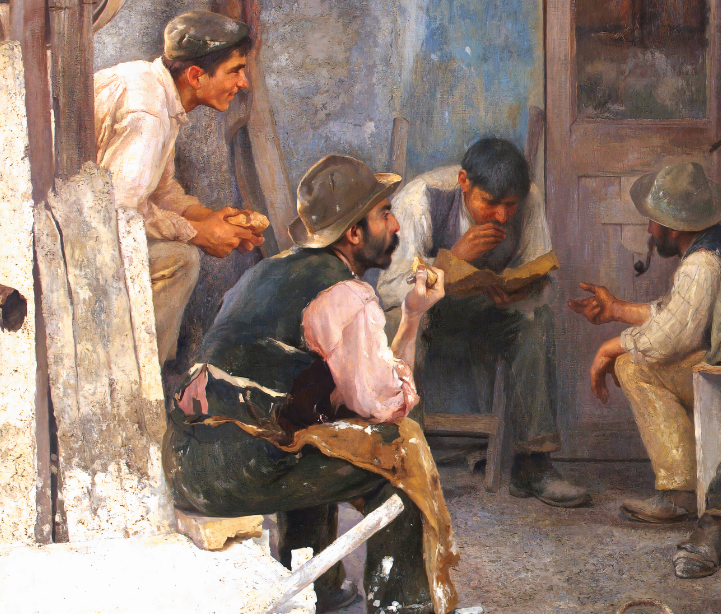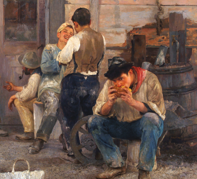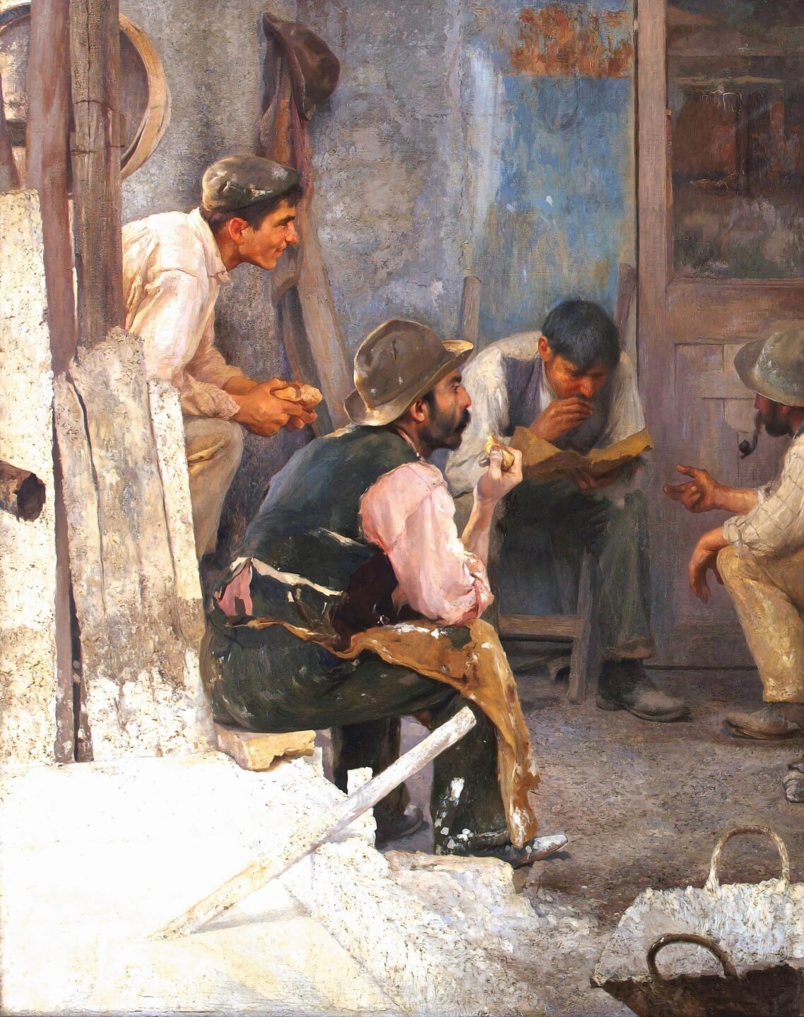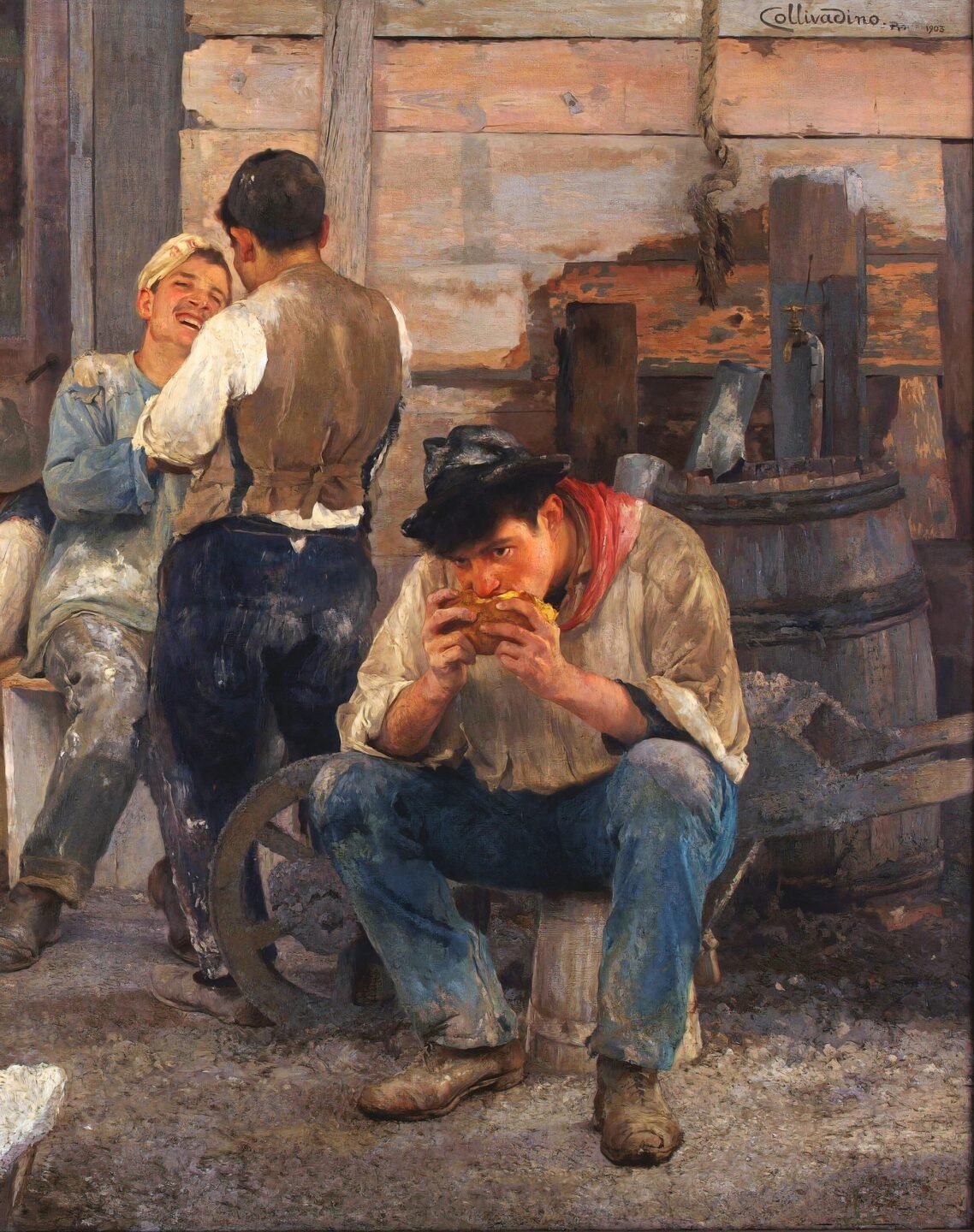 Formado en Italia, Collivadino integra las influencias del impresionismo y los Macchiaioli, combinándolas con un profundo compromiso social que caracteriza su obra. Este cuadro no solo es un documento visual económico de la Argentina, sino también una pieza que humaniza y otorga protagonismo a los trabajadores anónimos. La representación minuciosa y el equilibrio compositivo convierten La hora del almuerzo en un ícono de la pintura argentina, destacándose por su capacidad para narrar historias profundas y universales a través de lo cotidiano.