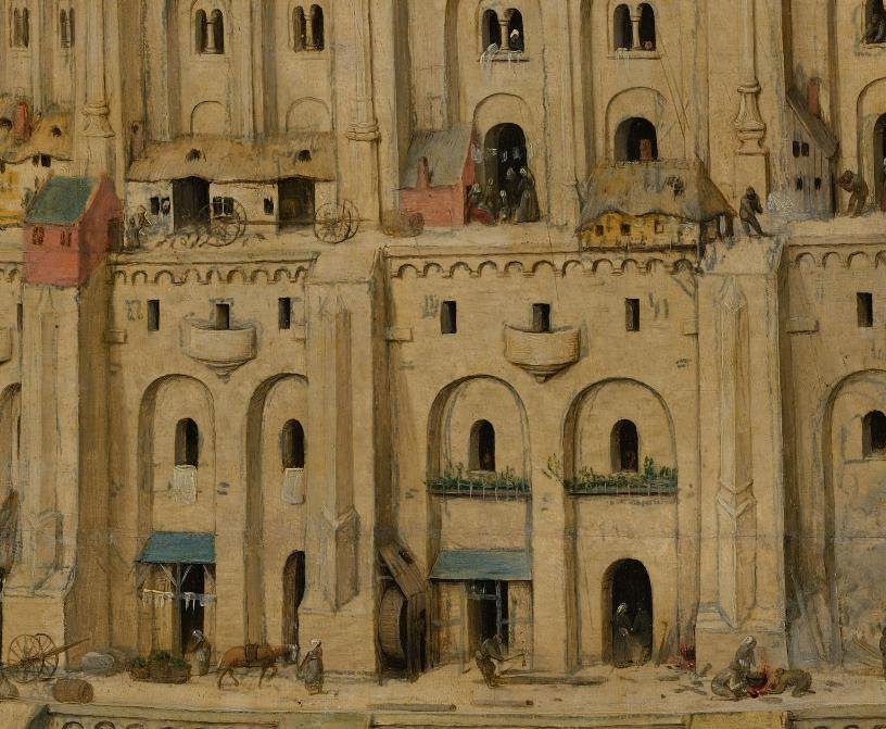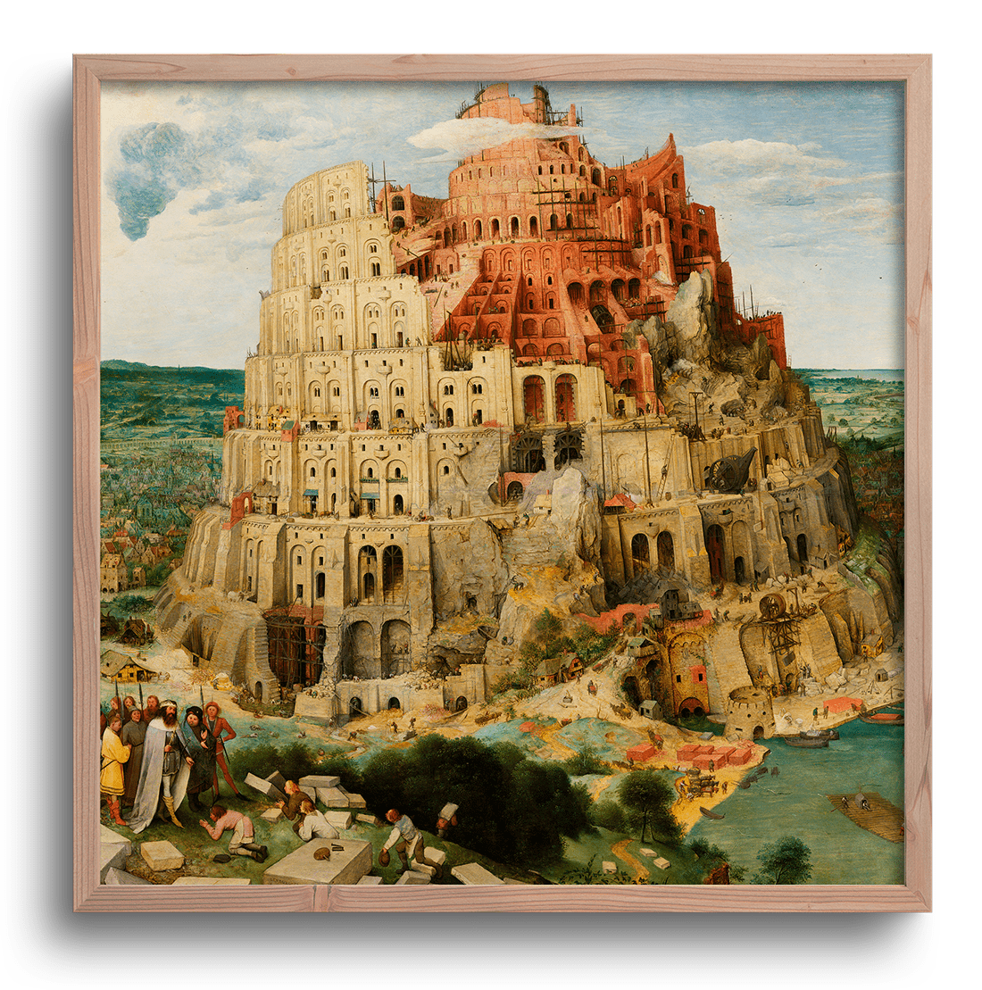 Pieter Brueghel el Viejo fue un agudo observador de su tiempo. En pleno siglo XVI, cuando Europa se debatía entre guerras religiosas, colonización y reformas políticas, sus cuadros reflejaban con ironía y lucidez las contradicciones de la sociedad. Conocido por sus escenas campesinas, usaba la sátira y el detalle minucioso para mostrar que detrás de la apariencia simple se escondía una crítica compleja. La Torre de Babel no solo señala el fracaso de la comunicación entre los pueblos, sino también la fragilidad de toda empresa humana cuando se erige desde la soberbia.