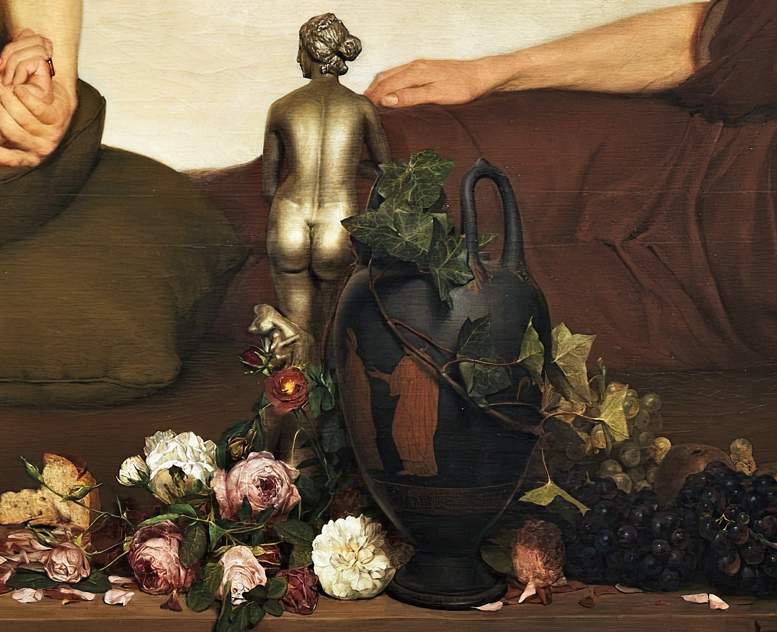 La influencia de los frisos atenienses y las cerámicas de figuras rojas en La Siesta es notable. Alma-Tadema, admirador de estas piezas, copiaba y conservaba figuras de vasos y otros elementos decorativos antiguos, los cuales sirvieron de inspiración para sus composiciones, aunque no de manera literal. La monumentalidad y el impacto visual de La Siesta se reflejan en la obra, que evoca la esencia escultórica de los frisos clásicos.