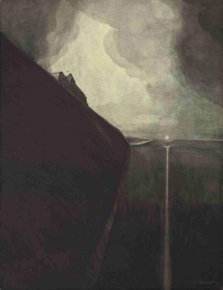 Léon Spilliaert, figura solitaria del simbolismo belga, utilizó el paisaje como vía para explorar el vacío, la espera y el pensamiento. En obras como Árboles, su lenguaje se vuelve casi musical, con estructuras que repiten formas mínimas para crear atmósferas emocionales. La falta de detalle no implica frialdad, sino concentración. Esta pintura no busca describir un bosque, sino convocar una emoción abstracta: la de estar solo ante algo inmenso, ordenado y silencioso. Es un ejemplo refinado de cómo la pintura puede sugerir sin contar.