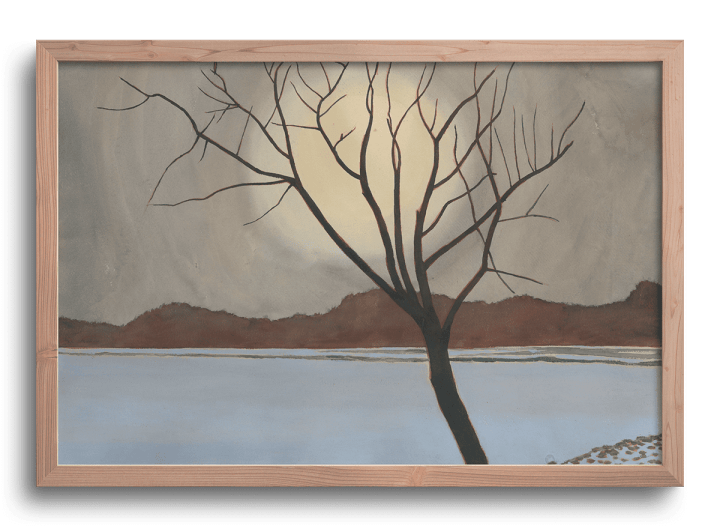 Obra sobre tela de calidad, montada y enmarcada con varilla chata de madera Marupá de 2 cm, con vidrio protector, fondo MDF de 3 mm y gancho para colgar. Lista para colocar en tu espacio.