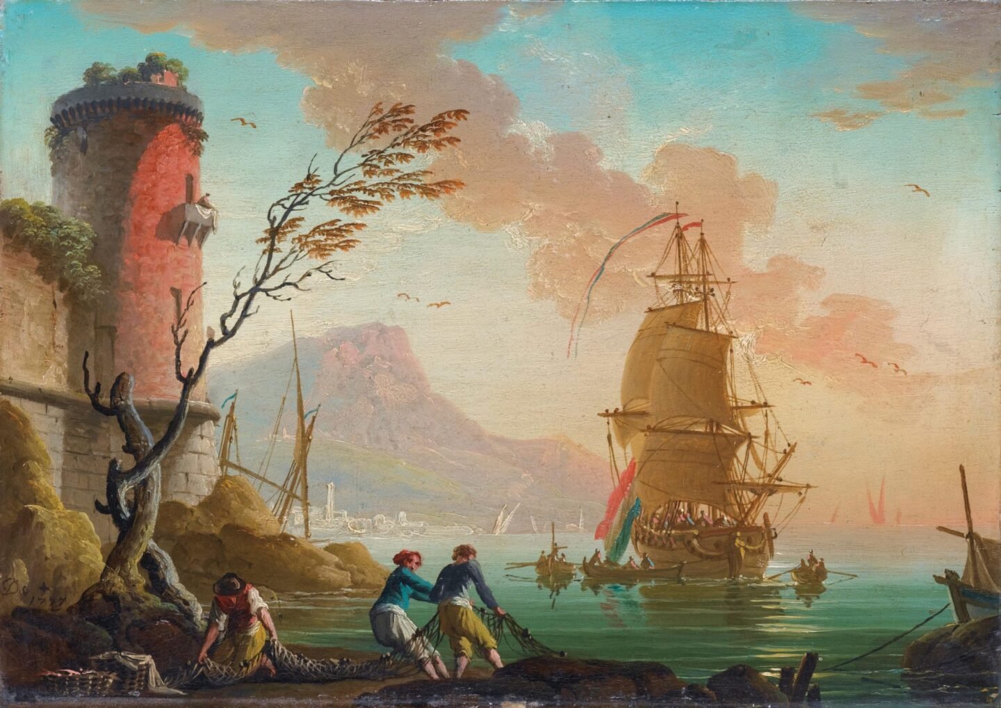 Escena de pesca en un puerto (1777)