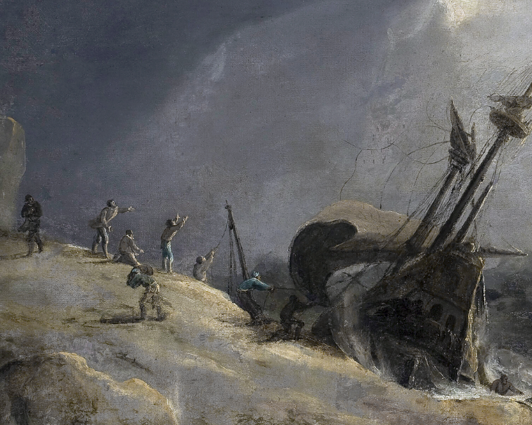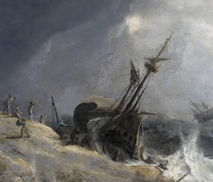 Pintor nacido en Emden y radicado en Ámsterdam, Backhuysen fue el gran heredero de la tradición de Willem van de Velde el Viejo y el Joven. Su especialidad fueron las escenas navales y marítimas, tanto de combate como de navegación civil, en las que combinó conocimiento técnico de las embarcaciones con un talento pictórico para la atmósfera. En el contexto de una Holanda comercial y marítima, sus obras hablaban tanto del poder nacional como de la vulnerabilidad humana. Naufragio sintetiza ese doble discurso: es tanto una imagen del peligro marino como una visión simbólica del destino y el azar.