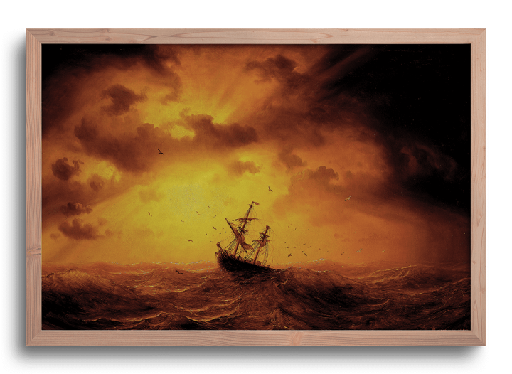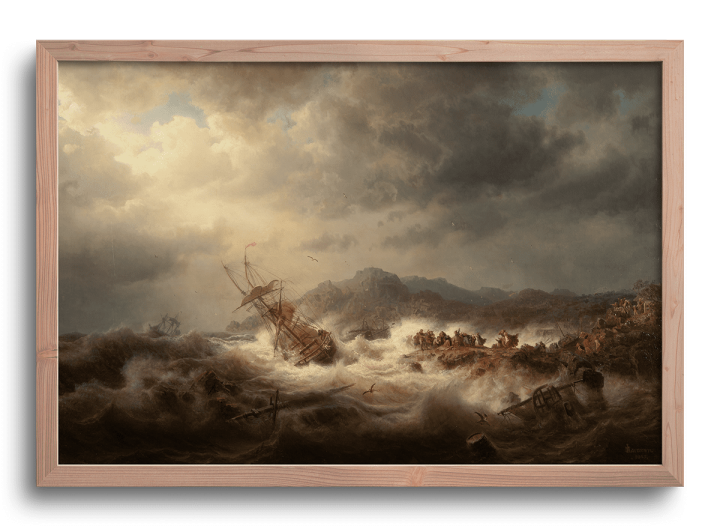 Marcus Larsson (1825-1864) fue un pintor sueco conocido por sus paisajes dramáticos, a menudo representando tormentas y escenas naturales violentas. A pesar de su corta vida, Larsson ganó reconocimiento por sus representaciones del poder de la naturaleza, especialmente en sus paisajes marinos. Su estilo, influenciado por el romanticismo, reflejaba una profunda fascinación por las fuerzas naturales y su capacidad para evocar emociones humanas. Larsson viajó extensamente por Europa, y sus obras fueron muy apreciadas tanto en su Suecia natal como en el extranjero.