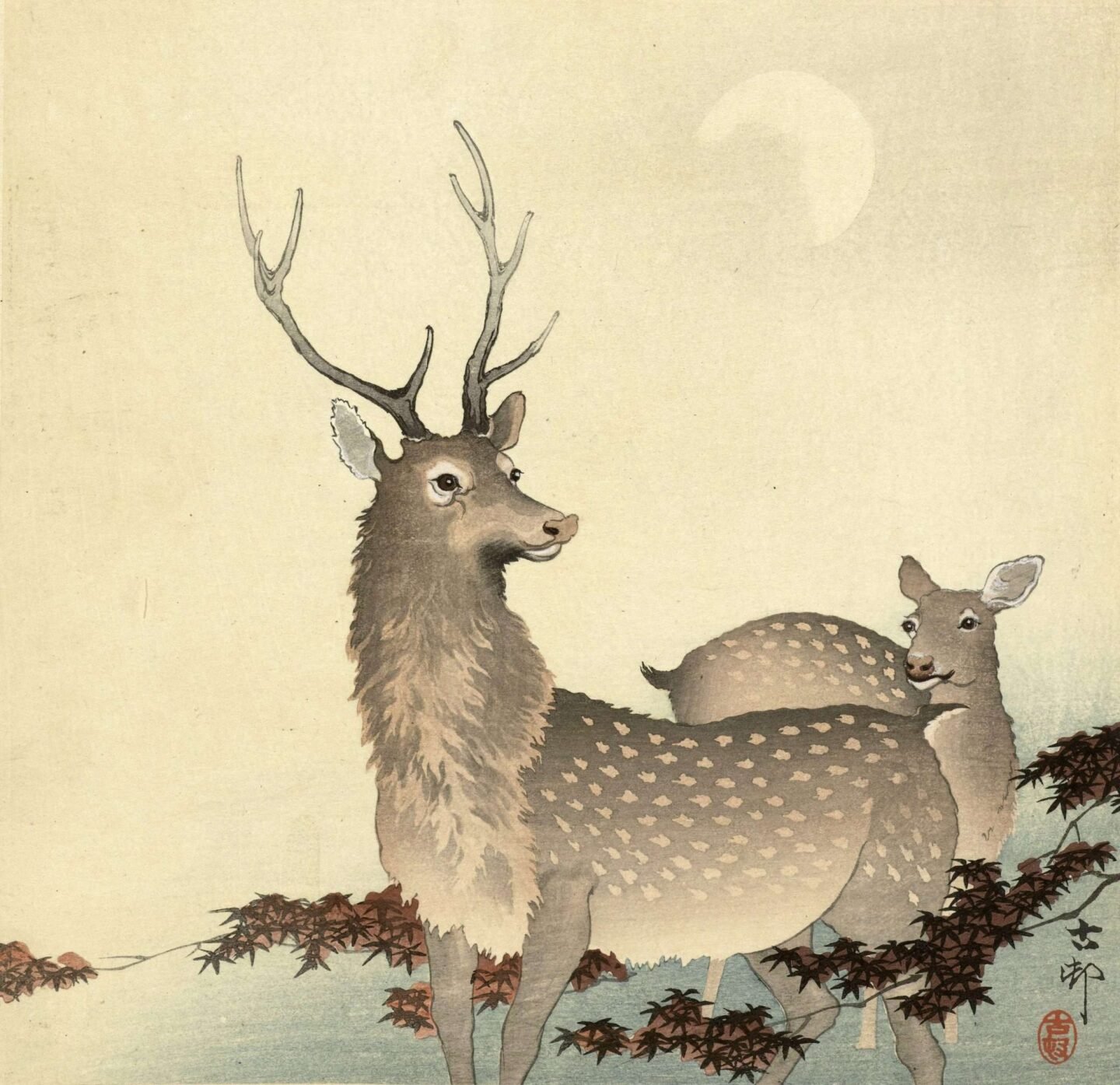 Ohara Koson (1877-1945), cuyo verdadero nombre era Ohara Matao, fue un destacado maestro del movimiento Shin-hanga en Japón, conocido por sus sutiles y elegantes representaciones de animales y escenas naturales. Se formó bajo la tutela de Suzuki Kason, un pintor de la tradición Nihonga, y posteriormente desarrolló un estilo que fusionaba las técnicas y temáticas tradicionales japonesas con las influencias artísticas occidentales, creando una obra que se destaca por su delicadeza y refinamiento. Koson se especializó en la creación de kacho-e (grabados de flores y aves), un subgénero del Ukiyo-e que se centra en la vida silvestre y la belleza del entorno natural. Su obra se caracteriza por la representación minuciosa y poética de pájaros, flores y criaturas, transmitiendo una profunda sensibilidad hacia el mundo natural. El uso del color y la composición en sus grabados tiene un equilibrio preciso, casi meditativo, lo cual atrajo la atención de coleccionistas tanto en Japón como en el extranjero, especialmente en los Estados Unidos y Europa.