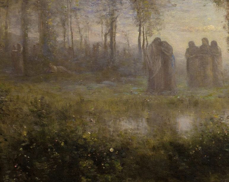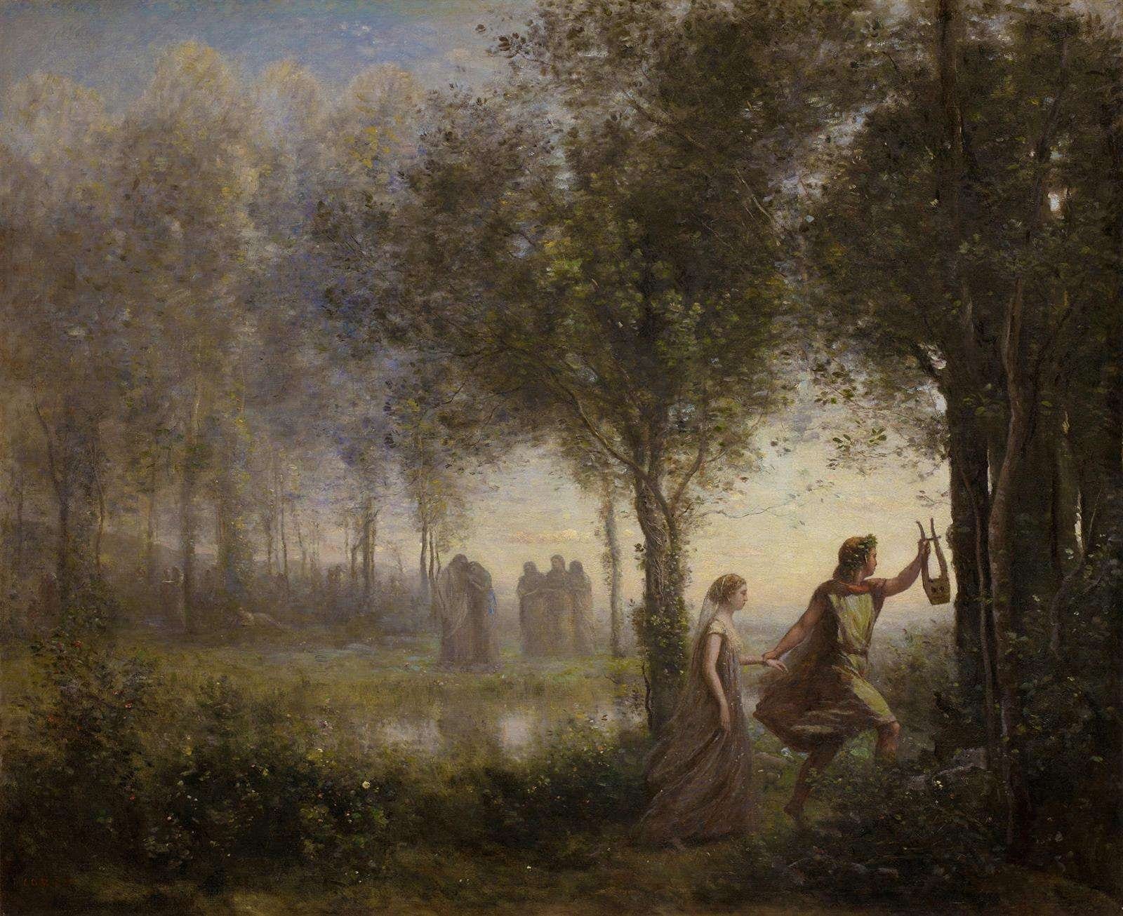 Orfeo es una pintura de Jean-Baptiste-Camille Corot que retrata al mítico músico y poeta griego Orfeo en un entorno natural. Jean-Baptiste-Camille Corot (1796-1875) fue un pintor francés conocido por sus paisajes y su influencia en el impresionismo.