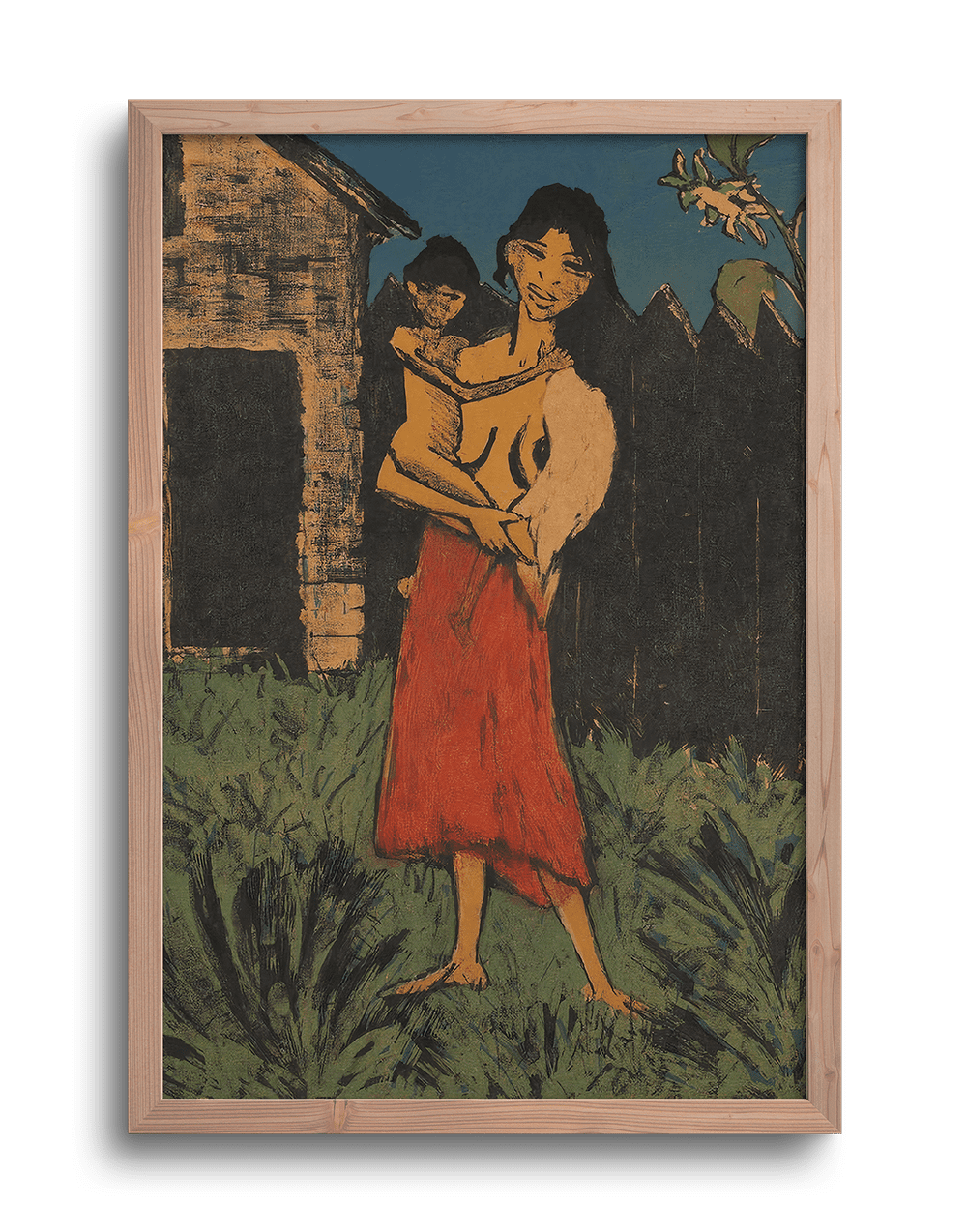 Obra sobre tela de calidad, montada y enmarcada con varilla chata de madera Marupá de 2 cm, con vidrio protector, fondo MDF de 3 mm y gancho para colgar. Lista para colocar en tu espacio.