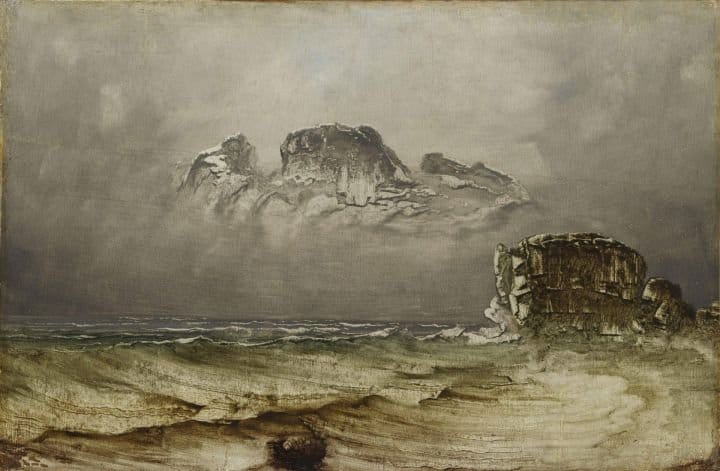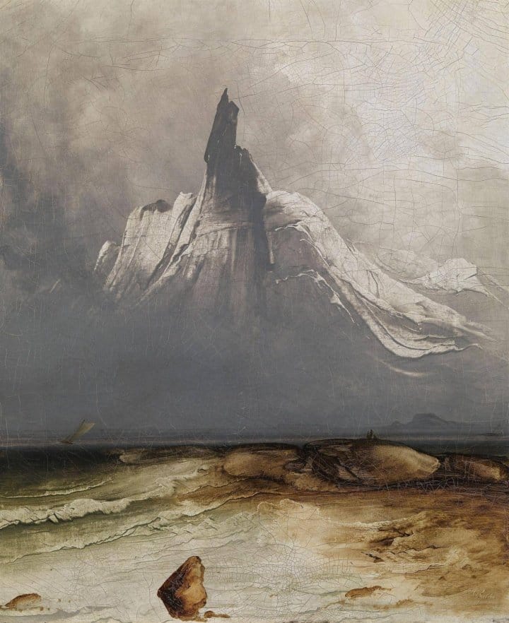 Nacido en Noruega, Peder Balke es uno de los artistas más enigmáticos del Romanticismo nórdico, conocido por sus paisajes evocadores y minimalistas que capturan la majestuosidad y el misterio de la naturaleza escandinava. Aunque poco reconocido en vida y con una producción artística limitada debido a su trabajo político y filantrópico, Balke dejó un legado que resurgió con fuerza en el siglo XX, siendo ahora considerado un precursor del arte moderno. Su obra, influenciada por sus viajes al Círculo Polar Ártico, presenta escenas dramáticas y atmosféricas de fiordos, mares tempestuosos y cielos cargados, ejecutadas con una técnica audaz y minimalista que sugiere más de lo que describe. Utilizando una paleta restringida de blancos, negros y grises, sus paisajes trascienden la mera representación para convertirse en meditaciones sobre lo sublime, un concepto central del Romanticismo que exalta el poder avasallador de la naturaleza frente a la fragilidad humana.