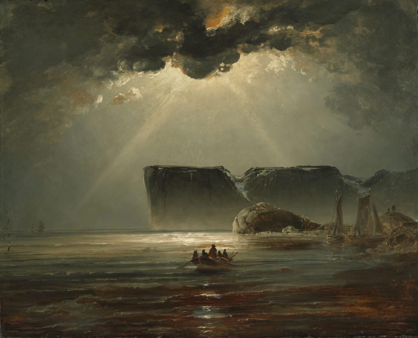Nacido en Noruega, Peder Balke es uno de los artistas más enigmáticos del Romanticismo nórdico, conocido por sus paisajes evocadores y minimalistas que capturan la majestuosidad y el misterio de la naturaleza escandinava. Aunque poco reconocido en vida y con una producción artística limitada debido a su trabajo político y filantrópico, Balke dejó un legado que resurgió con fuerza en el siglo XX, siendo ahora considerado un precursor del arte moderno. Su obra, influenciada por sus viajes al Círculo Polar Ártico, presenta escenas dramáticas y atmosféricas de fiordos, mares tempestuosos y cielos cargados, ejecutadas con una técnica audaz y minimalista que sugiere más de lo que describe. Utilizando una paleta restringida de blancos, negros y grises, sus paisajes trascienden la mera representación para convertirse en meditaciones sobre lo sublime, un concepto central del Romanticismo que exalta el poder avasallador de la naturaleza frente a la fragilidad humana.