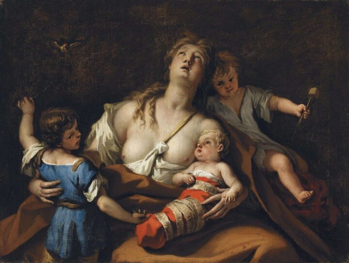 ‘Perseo y Fineo con la cabeza de Medusa’ es una obra basada en la mitología griega que captura el dramático momento en que Perseo utiliza la cabeza de Medusa para derrotar a Fineo. Pintada con maestría por Sebastiano Ricci.