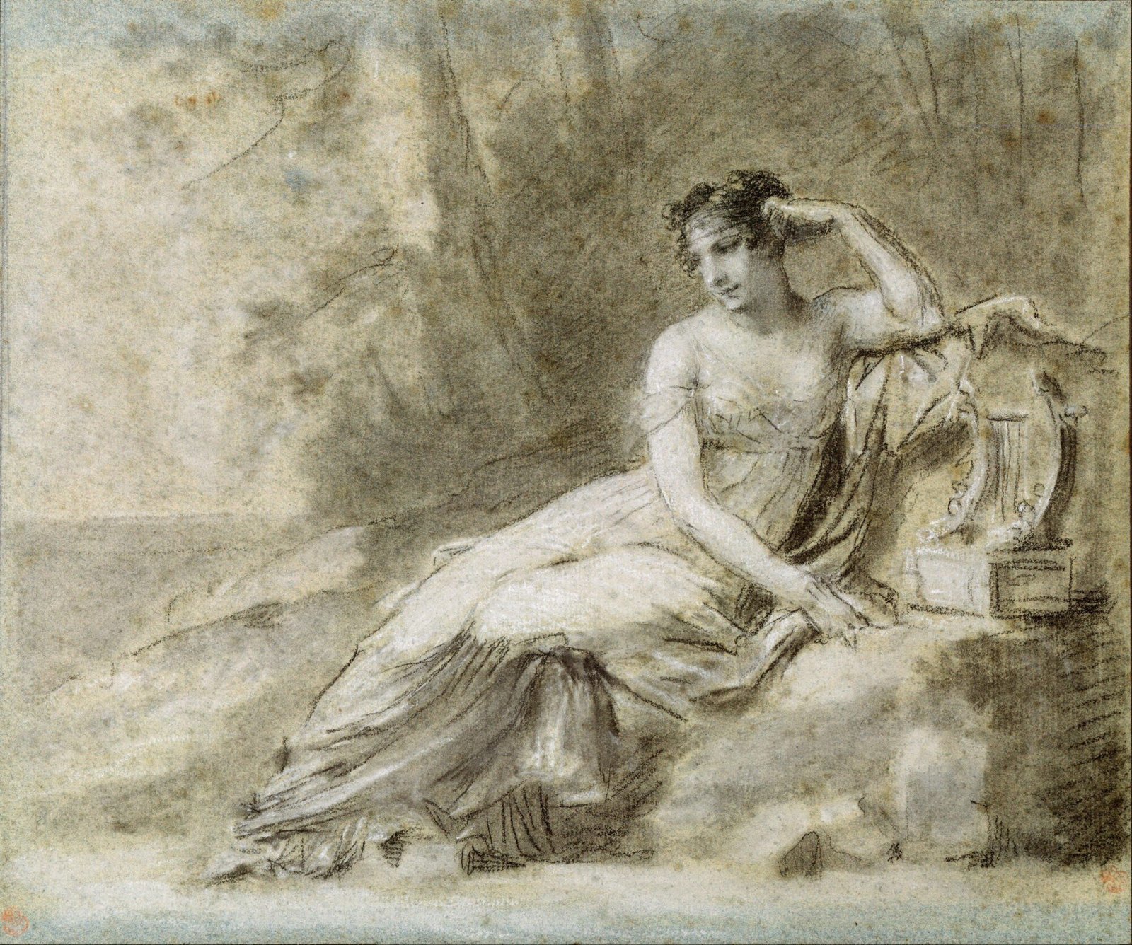 Pierre-Paul Prud’hon (1758–1823) fue un pintor francés formado en Dijon y perfeccionado en Parma y Roma, donde asimiló la tradición clásica pero desarrolló una sensibilidad más poética que la de sus contemporáneos. Su trayectoria atravesó los años decisivos de la Revolución, el Consulado y el Imperio napoleónico, y en ese recorrido trabajó para figuras centrales del poder: Napoleón y, especialmente, la emperatriz Josefina, con quien tuvo una relación artística de gran afinidad. Aunque vivió dentro del marco neoclásico, su obra se distingue por un enfoque menos retórico y más íntimo: cuerpos suavemente modelados, atmósferas envolventes y una luz delicada que le permitió construir escenas alegóricas, retratos y composiciones cargadas de una melancolía singular. Prud’hon ofreció una alternativa al tono heroico de Jacques-Louis David y su círculo; en lugar de la exaltación política, propuso una pintura que mezcla ideal clásico, ternura emocional y una lectura más humana de los conflictos y tensiones de su época.