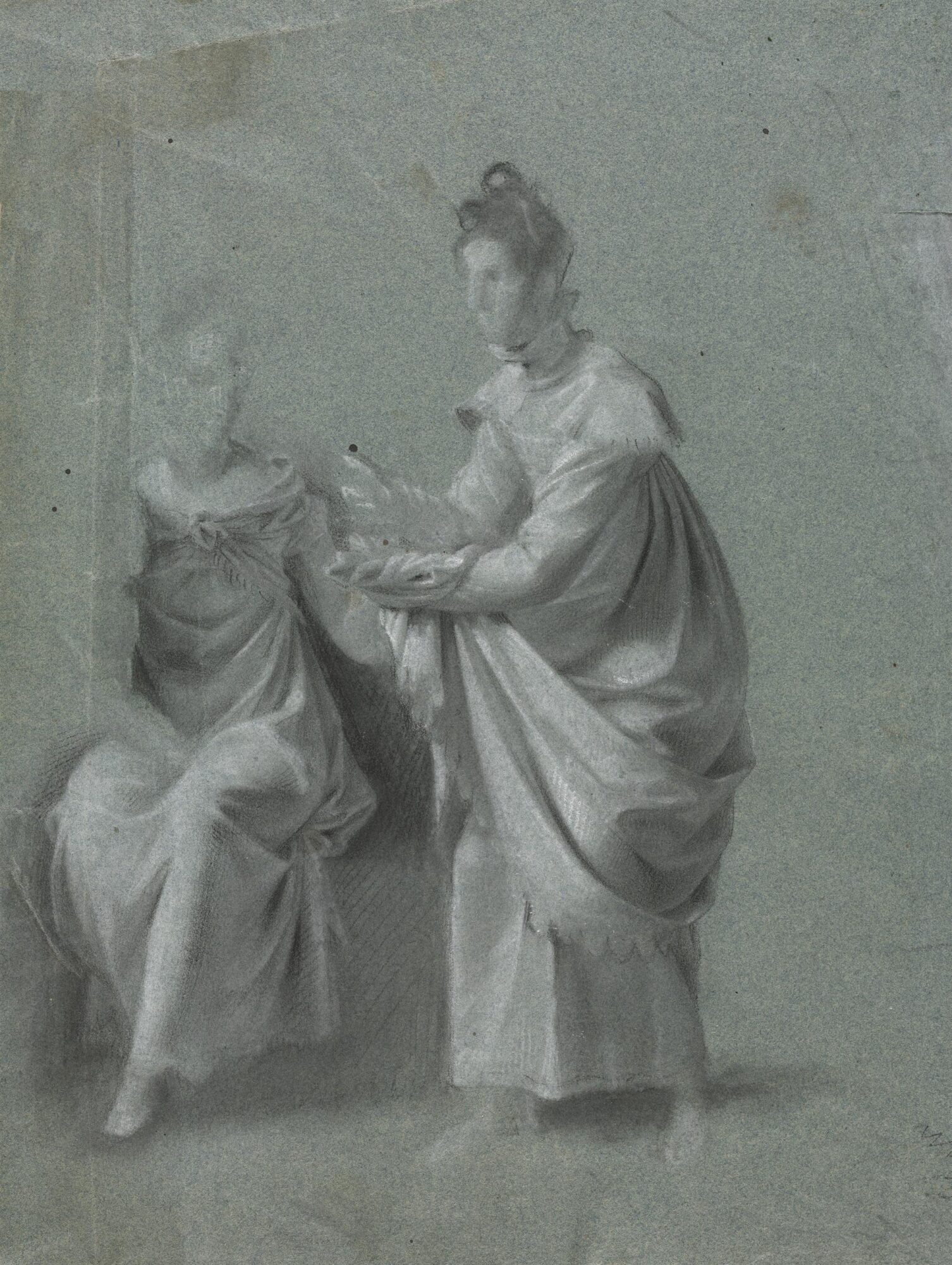 Pierre-Paul Prud’hon (1758–1823) fue un pintor francés formado en Dijon y perfeccionado en Parma y Roma, donde asimiló la tradición clásica pero desarrolló una sensibilidad más poética que la de sus contemporáneos. Su trayectoria atravesó los años decisivos de la Revolución, el Consulado y el Imperio napoleónico, y en ese recorrido trabajó para figuras centrales del poder: Napoleón y, especialmente, la emperatriz Josefina, con quien tuvo una relación artística de gran afinidad. Aunque vivió dentro del marco neoclásico, su obra se distingue por un enfoque menos retórico y más íntimo: cuerpos suavemente modelados, atmósferas envolventes y una luz delicada que le permitió construir escenas alegóricas, retratos y composiciones cargadas de una melancolía singular. Prud’hon ofreció una alternativa al tono heroico de Jacques-Louis David y su círculo; en lugar de la exaltación política, propuso una pintura que mezcla ideal clásico, ternura emocional y una lectura más humana de los conflictos y tensiones de su época.