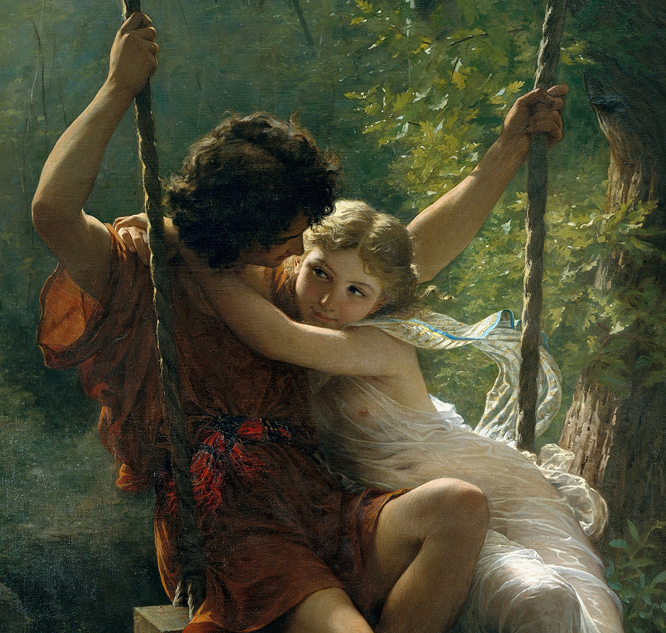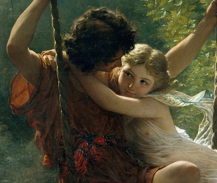 La primavera fue pintada por Cot en 1873. La pintura se exhibió por primera vez en el salón de París de 1873, donde fue bien recibida; el trabajo se convertiría en la obra de arte más exitosa de Cot y, a menudo, se copiaba en otros medios. En cuanto a la pintura en sí, la obra de Cot representa a una pareja joven encerrada en un abrazo en un columpio en medio de un bosque o un jardín. Los dos visten atuendos clásicos y aparentemente están cautivados el uno por el otro, descrito por una fuente como «borrachos con el primer amor».