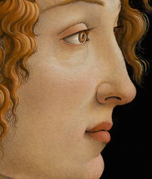 Retrato de una joven (c. 1480) es uno de los testimonios más delicados de la sensibilidad estética del Renacimiento florentino. La obra presenta a una mujer de perfil, con un peinado elaborado y vestida con refinamiento, en una postura que recuerda las monedas antiguas, idealizando su belleza como si fuera un emblema clásico. Botticelli —pintor de la corte de los Médici y autor de El nacimiento de Venus— capta aquí una feminidad etérea y melancólica, que encarna el ideal neoplatónico de belleza: no como deseo carnal, sino como reflejo de lo divino. El retrato fue pintado en una Florencia que combinaba poder financiero, filosofía humanista y tensiones religiosas crecientes. La identidad de la joven ha sido discutida, pero se la vincula con Simonetta Vespucci, musa y símbolo de una generación. Este tipo de retrato no solo marcó un canon visual que influenciaría siglos posteriores, sino que fijó una forma de mirar lo femenino cargada de simbolismo, entre la devoción y el mito.