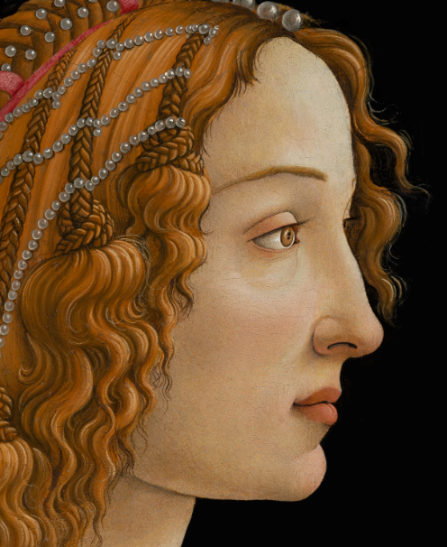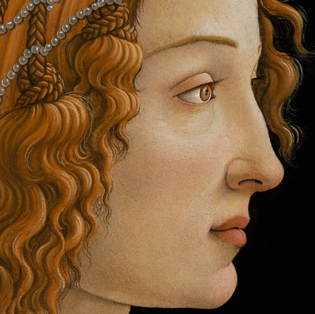 Botticelli plasma en esta pintura los ideales del humanismo renacentista, inspirándose en la simetría y proporción de los valores clásicos. La postura de perfil de la joven, típica del retrato renacentista, evoca las medallas antiguas y resalta la conexión con el mundo grecolatino. Más allá de ser un simple retrato, esta obra es un homenaje a la búsqueda de la perfección estética y espiritual. La sobriedad del fondo permite centrar la atención en la introspección y el misterio que emana del rostro de la joven, convirtiendo la pintura en un ejemplo sublime de la sensibilidad artística de Botticelli.
