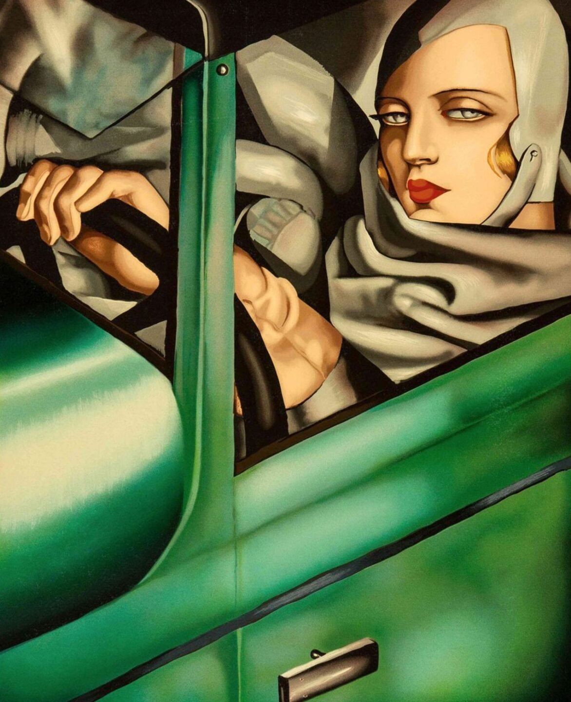 Tamara de Lempicka (1898-1980) fue una pintora polaca que se convirtió en una de las máximas exponentes del Art Déco, un movimiento que fusionó la elegancia clásica con la modernidad de la era industrial. Su estilo, influenciado por el cubismo y el neoclasicismo, se caracteriza por líneas precisas, volúmenes escultóricos y una estética que exuda lujo y sensualidad. Obras como «Autorretrato en un Bugatti verde» y «La bella Rafaela» encapsulan su visión de una feminidad fuerte, moderna y empoderada, reflejando la sofisticación de la alta sociedad europea de los años 20 y 30.