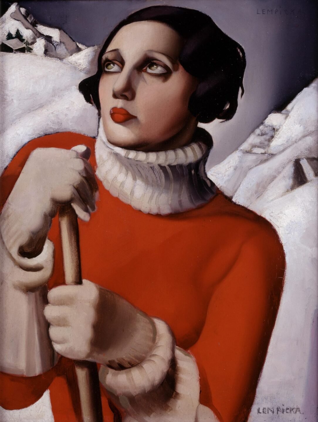 Tamara de Lempicka, figura emblemática del Art Déco, desarrolló una imagen de mujer moderna, cosmopolita y provocadora tanto en su vida como en su pintura. Su obra pictórica, centrada en figuras femeninas y geometrías elegantes, también se expandió al diseño gráfico y publicitario, áreas donde aplicó su sensibilidad por la moda, la arquitectura y el color. Saint-Moritz encarna ese cruce entre arte y consumo, entre vanguardia y exclusividad. En plena Europa de entreguerras, mientras el fascismo avanzaba, Lempicka retrataba un mundo paralelo: hedonista, pulido y fugitivo.