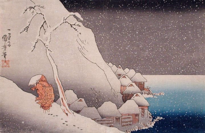 Kuniyoshi nació en 1798, siendo hijo de un tintorero de seda y con el nombre original de Yoshisabur?. Al parecer ayudó a su padre en su negocio y se sugiere que esta experiencia influyó en sus diseños textiles y en el uso del color en sus impresiones. Se dice que a la edad de siete u ocho años Kuniyoshi quedó impresionado por la vista de impresos sobre guerreros y los artesanos y plebeyos, lo que marcó su evolución posterior.