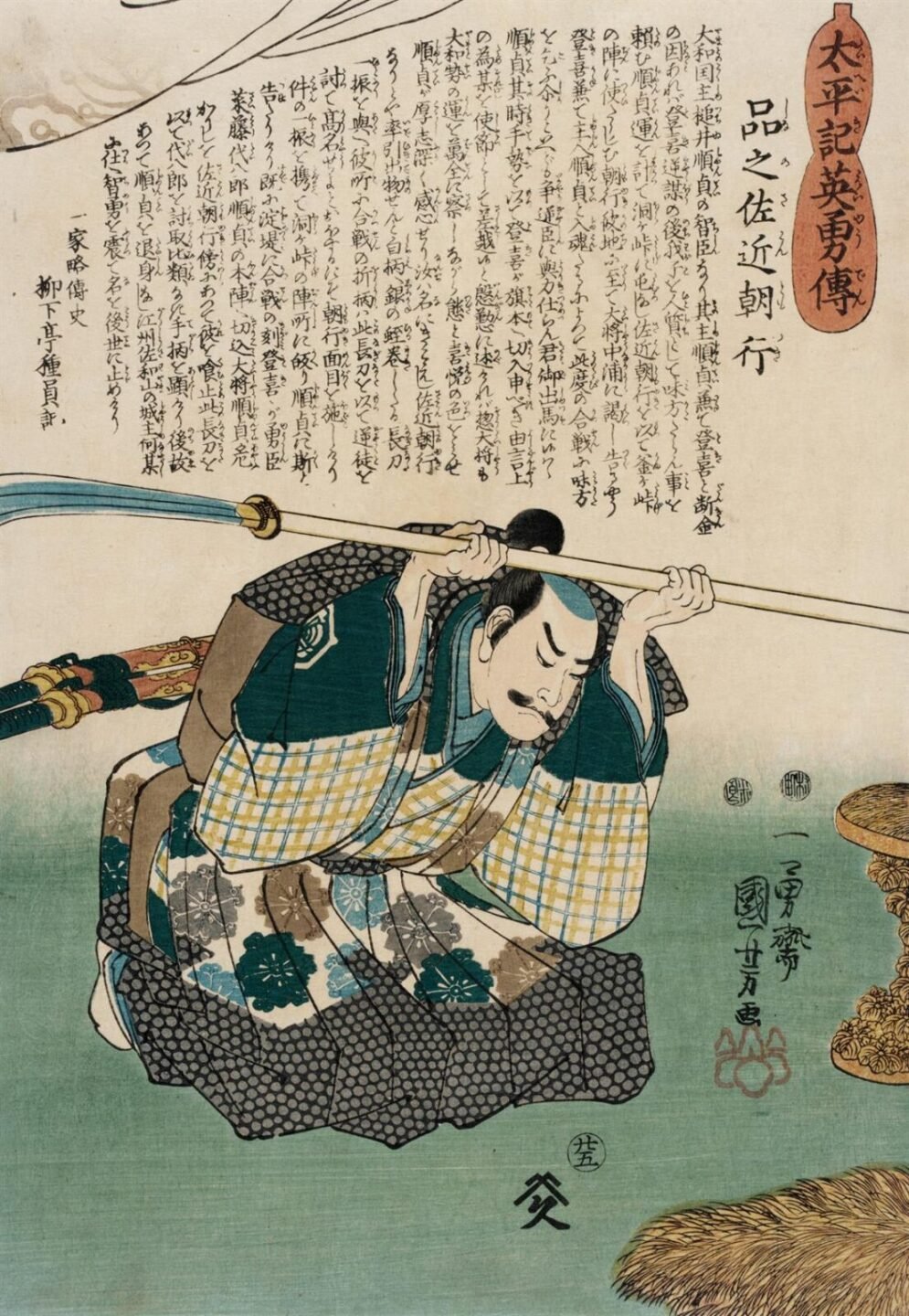 Yoshisabur? demostró sus habilidades en el dibujo a la edad de doce años, atrayendo la atención del impresor Utagawa Toyokuni. Entró oficialmente en el estudio de Toyokuni en 1811 y se convirtió en uno de sus pupilos principales. Permaneció como aprendiz hasta 1814, cuando cambia su nombre por el nombre de Kuniyoshi y pasa a ser artista independiente. Durante ese año realizó su primera obra, las ilustraciones para kusazoshi g?kan Gobuji Ch?shingura, una parodia de la historia original de Ch?shingura. En 1815, Kuniyoshi creó ilustraciones para libros para yomihon, kokkeibon, gokan y hanashibon, e imprimió de forma independiente sus dibujos sobre actores y guerreros.