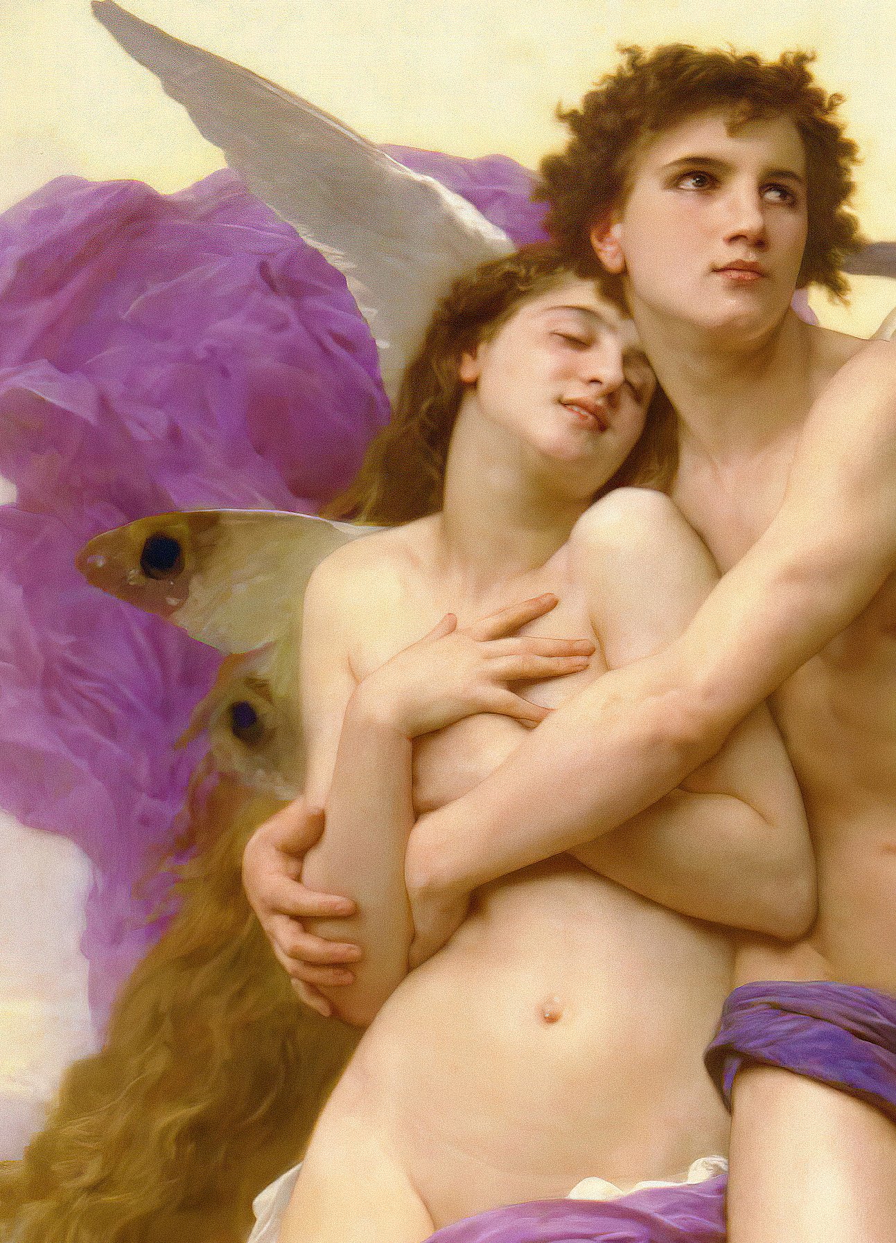 Realizada en los últimos años del siglo XIX, El rapto de Psique encarna la síntesis más refinada del academicismo francés en pleno auge de las críticas al arte oficial. Bouguereau, maestro del virtuosismo técnico y de la idealización neoclásica, representa aquí el instante en que Eros eleva a Psique hacia los cielos, retomando el mito grecolatino con una sensualidad elegante y una composición ascendente que sugiere una transfiguración espiritual. Pintada en una Francia sacudida por los debates sobre el simbolismo, el naturalismo y el papel del arte en la sociedad moderna, la obra fue concebida como un manifiesto de belleza ideal en medio de una época de profundas transformaciones estéticas. Psique, con su cuerpo suspendido y abandonado a los brazos del dios, alude tanto al éxtasis amoroso como a la redención del alma, mientras la perfección anatómica y la transparencia de las veladuras evidencian el dominio absoluto del oficio pictórico. Esta obra, admirada por el público burgués pero ignorada por las vanguardias nacientes, quedó como uno de los últimos grandes suspiros del clasicismo académico antes de su eclipse definitivo.